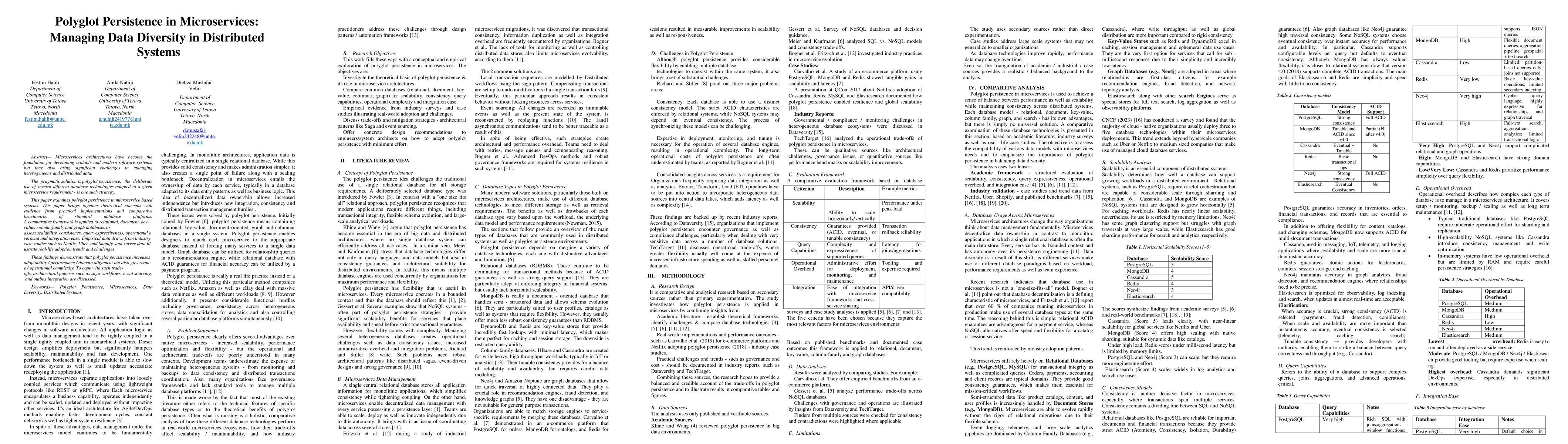 Microservices architectures have become the foundation for developing scalable and modern software systems, but they also bring significant challenges in managing heterogeneous and distributed data. The pragmatic solution is polyglot persistence, the deliberate use of several different database technologies adapted to a given microservice requirement - is one such strategy. This paper examines polyglot persistence in microservice based systems. This paper brings together theoretical concepts with evidence from practical implementations and comparative benchmarks of standard database platforms. A comparative framework is applied to relational, document, key-value, column-family and graph databases to assess scalability, consistency, query expressiveness, operational overhead and integration ease. Empirical data drawn from industry case studies such as Netflix, Uber, and Shopify, and survey data illustrate real-life adoption trends and challenges. These findings demonstrate that polyglot persistence increases adaptability , performance , domain alignment but also governance or operational complexity. To cope with such trade-offs, architectural patterns such as saga workflows, event sourcing, and outbox integration are discussed.