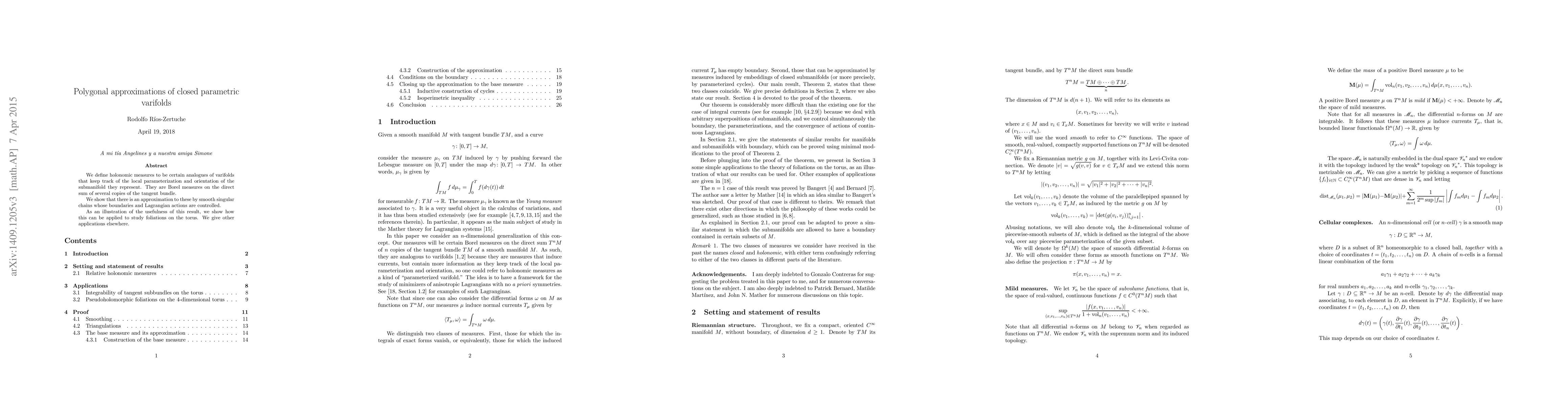 We define holonomic measures to be certain analogues of varifolds that keep track of the local parameterization and orientation of the submanifold they represent. They are Borel measures on the direct sum of several copies of the tangent bundle. We show that there is an approximation to these by smooth singular chains whose boundaries and Lagrangian actions are controlled. As an illustration of the usefulness of this result, we show how this can be applied to study foliations on the torus. We give other applications elsewhere.
