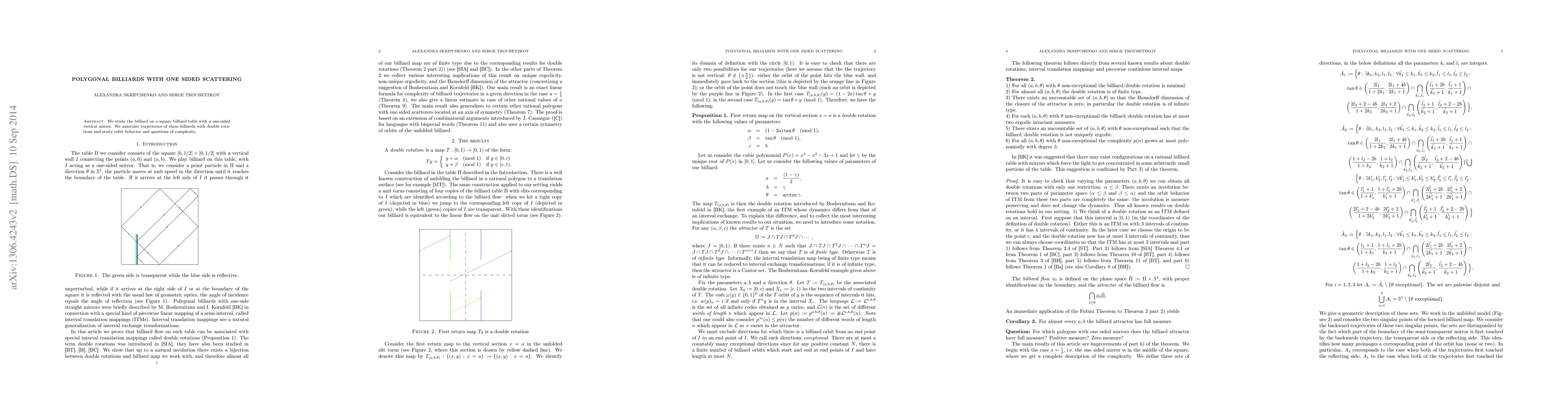 This paper investigates polygonal billiards confined to a square table with one vertical mirror, associating their trajectories with double rotations and analyzing orbit behavior and complexity. The study focuses on the intricate dynamics and complexity arising from one-sided scattering.