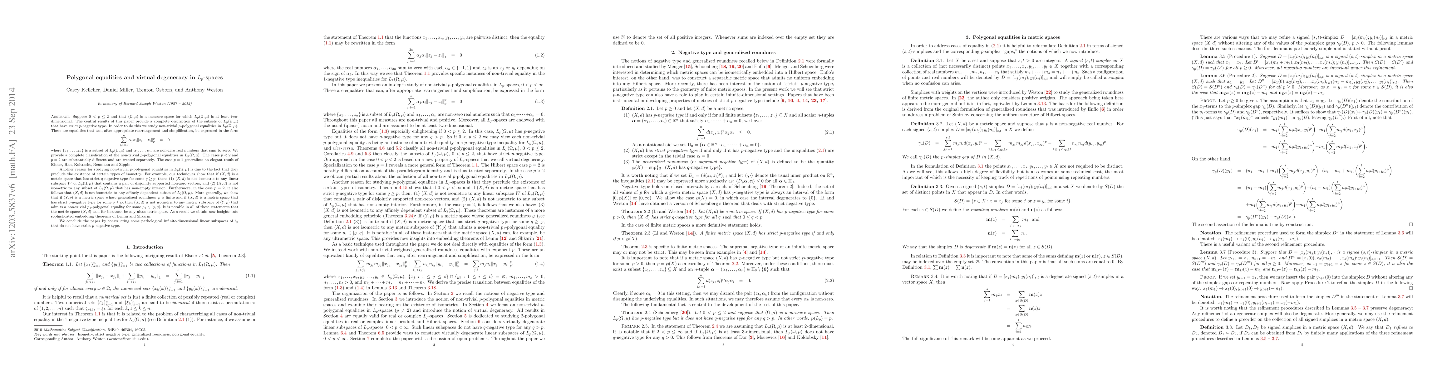 Researchers studied polygonal equalities in Lp-spaces to understand when certain types of isometries can exist, finding that strict p-negative type precludes isometry to some subsets, particularly those with disjointly supported vectors or non-empty interior.