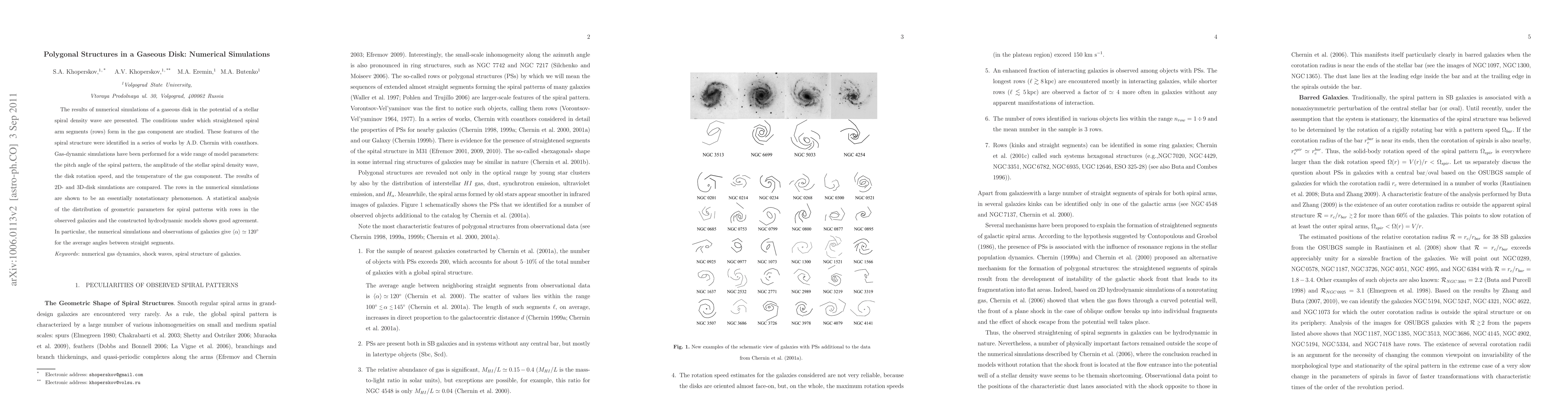 The results of numerical simulations of a gaseous disk in the potential of a stellar spiral density wave are presented. The conditions under which straightened spiral arm segments (rows) form in the gas component are studied. These features of the spiral structure were identified in a series of works by A.D. Chernin with coauthors. Gas-dynamic simulations have been performed for a wide range of model parameters: the pitch angle of the spiral pattern, the amplitude of the stellar spiral density wave, the disk rotation speed, and the temperature of the gas component. The results of 2D- and 3D-disk simulations are compared. The rows in the numerical simulations are shown to be an essentially nonstationary phenomenon. A statistical analysis of the distribution of geometric parameters for spiral patterns with rows in the observed galaxies and the constructed hydrodynamic models shows good agreement. In particular, the numerical simulations and observations of galaxies give $<{\alpha}>\simeq 120^\circ$ for the average angles between straight segments.