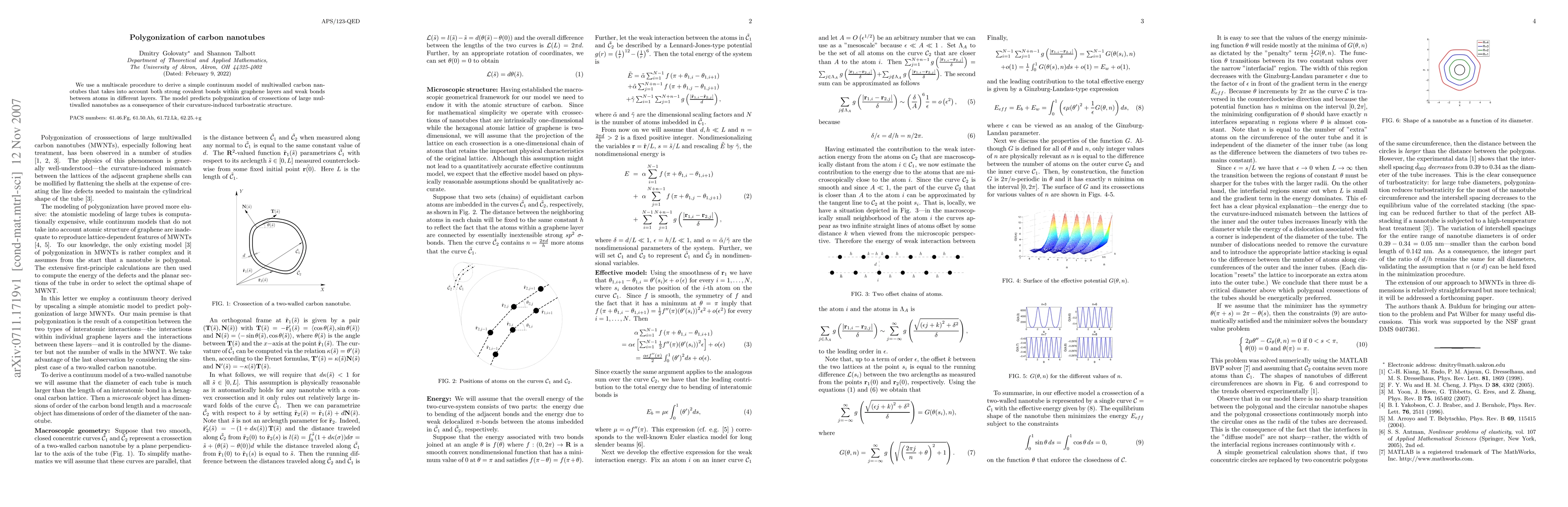 This research develops a continuum model for multiwalled carbon nanotubes, revealing that large tubes' curvature leads to polygonized cross-sections due to a combination of strong intralayer and weak interlayer bonds. The model predicts structural polygonization as a result of these curvature-induced turbostratic arrangements.