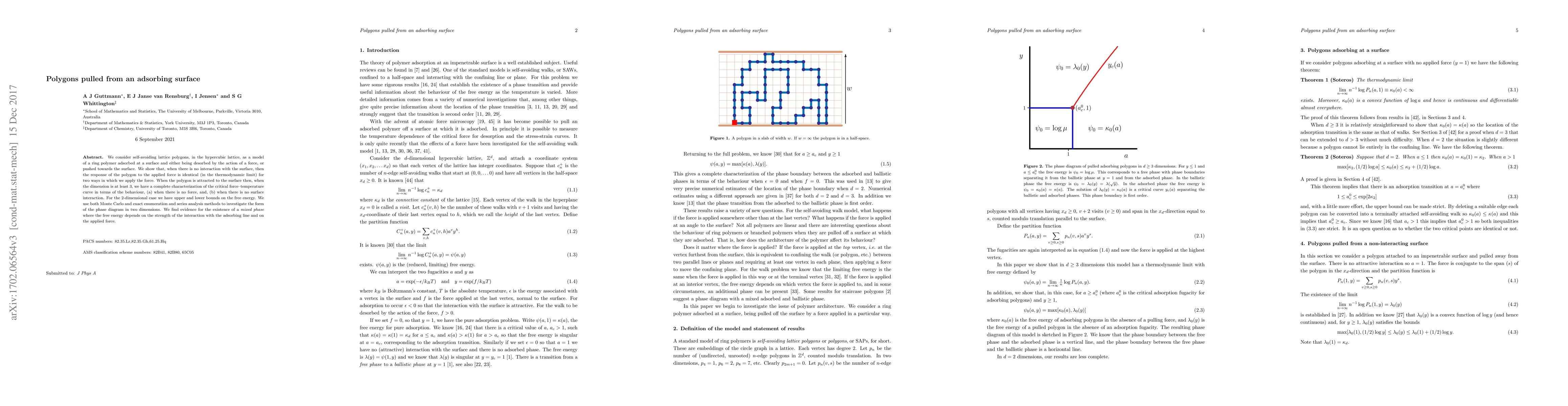 This paper investigates self-avoiding lattice polygons as a model for ring polymers adsorbed on a surface, analyzing their response to applied forces. It finds identical responses in the absence of surface interaction and characterizes the critical force-temperature curve for dimensions ≥3, while providing bounds for the 2D case, revealing a mixed phase dependent on the interaction strength and applied force.