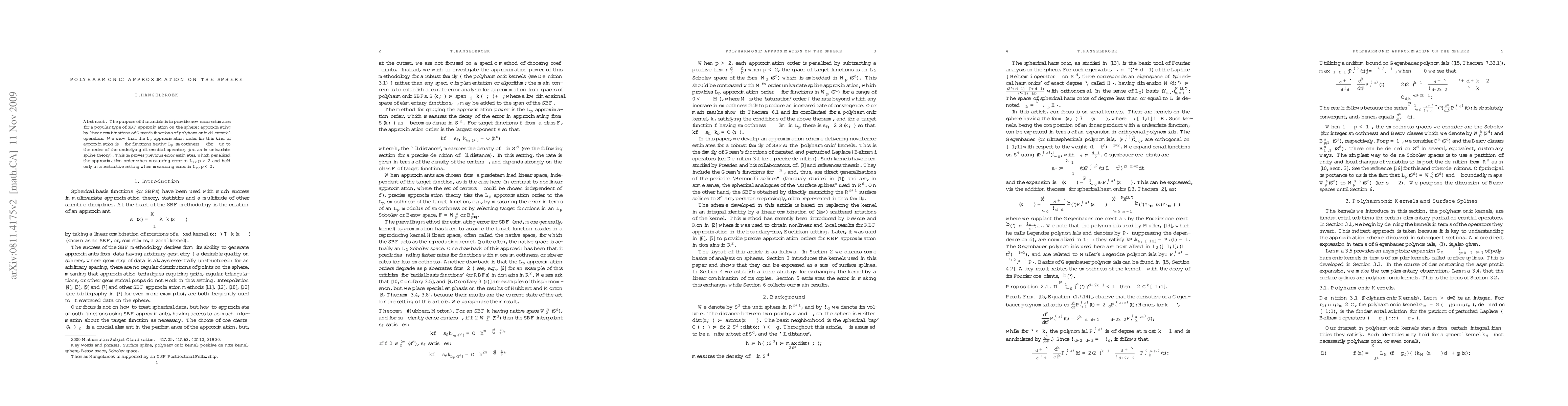 The purpose of this article is to provide new error estimates for a popular type of SBF approximation on the sphere: approximating by linear combinations of Green's functions of polyharmonic differential operators. We show that the $L_p$ approximation order for this kind of approximation is $\sigma$ for functions having $L_p$ smoothness $\sigma$ (for $\sigma$ up to the order of the underlying differential operator, just as in univariate spline theory). This is an improvement over previous error estimates, which penalized the approximation order when measuring error in $L_p$, p>2 and held only in a restrictive setting when measuring error in $L_p$, p<2.