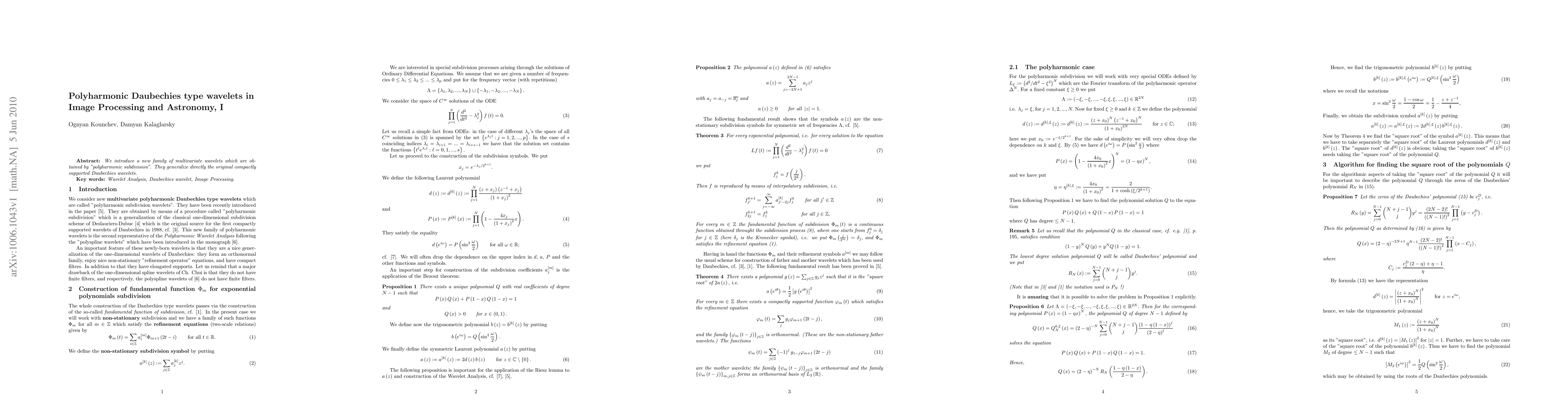 Summary: This paper introduces a new family of multivariate wavelets derived through "polyharmonic subdivision," which generalizes the original Daubechies wavelets. These wavelets are proposed for applications in image processing and astronomy.
