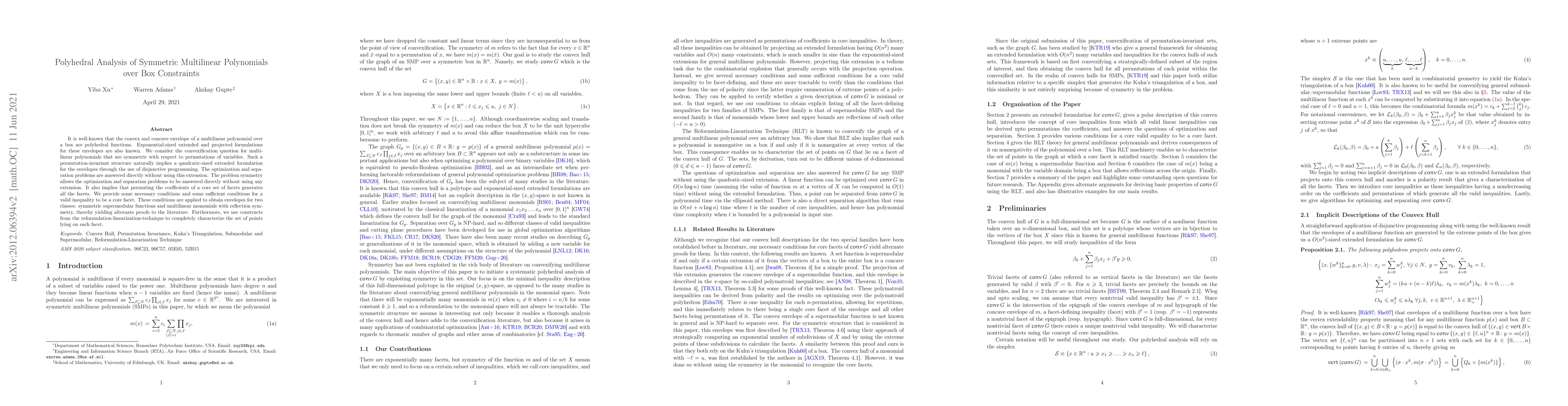 This paper explores the convex and concave envelopes of symmetric multilinear polynomials over box constraints, demonstrating that their optimization and separation can be directly addressed without extended formulations. It leverages the permutation-invariant structure to derive quadratic-sized formulations and provides necessary and sufficient conditions for core facets, applying these to symmetric supermodular functions and reflection-symmetric multilinear monomials.