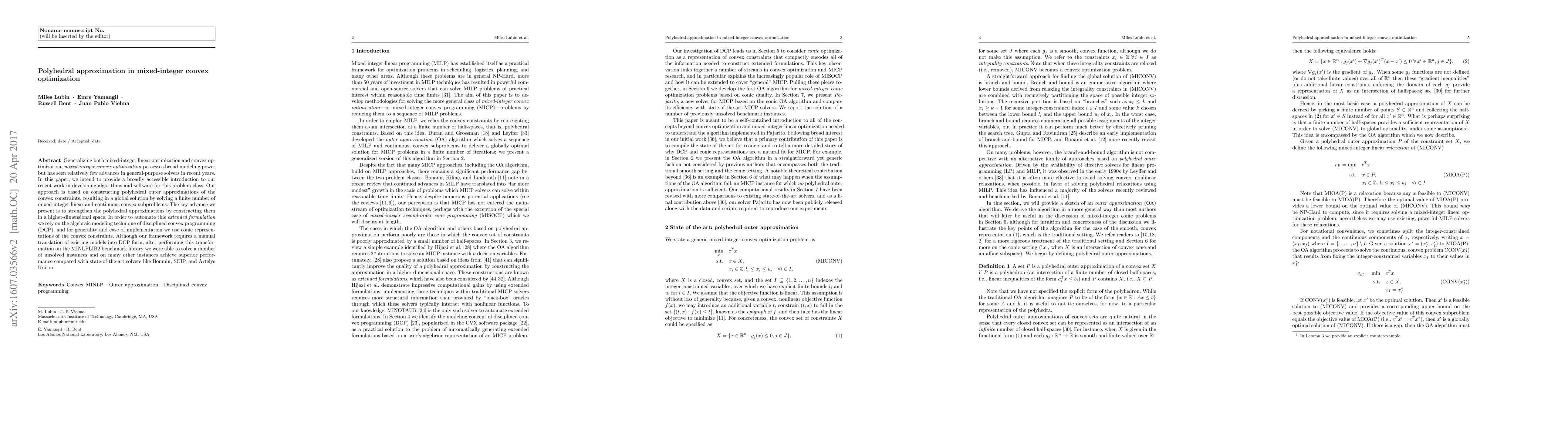 This paper introduces algorithms and software for solving mixed-integer convex optimization problems by constructing polyhedral outer approximations in higher-dimensional spaces. The approach leverages disciplined convex programming and conic representations, achieving superior performance on the MINLPLIB2 benchmark library compared to existing solvers.