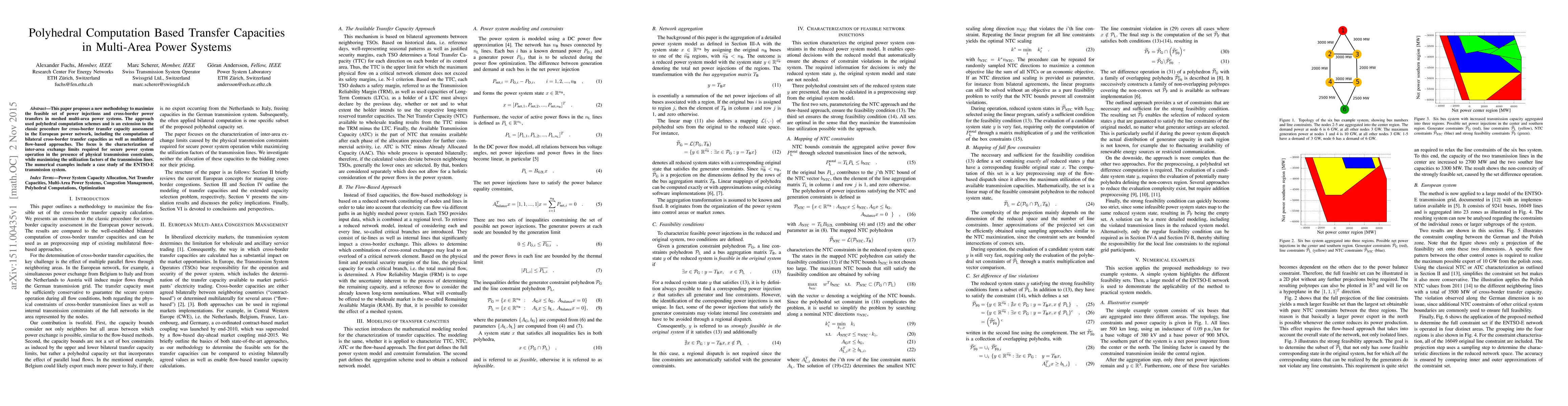 This paper proposes a new methodology to maximize the feasible set of power injections and cross-border power transfers in meshed multi-area power systems. The approach used polyhedral computation schemes and is an extension to the classic procedure for cross-border transfer capacity assessment in the European power network, including the computation of bilateral cross-border transfer capacities as well as multilateral flow-based approaches. The focus is the characterization of inter-area exchange limits required for secure power system operation in the presence of physical transmission constraints, while maximizing the utilization factors of the transmission lines. The numerical examples include a case study of the ENTSO-E transmission system.