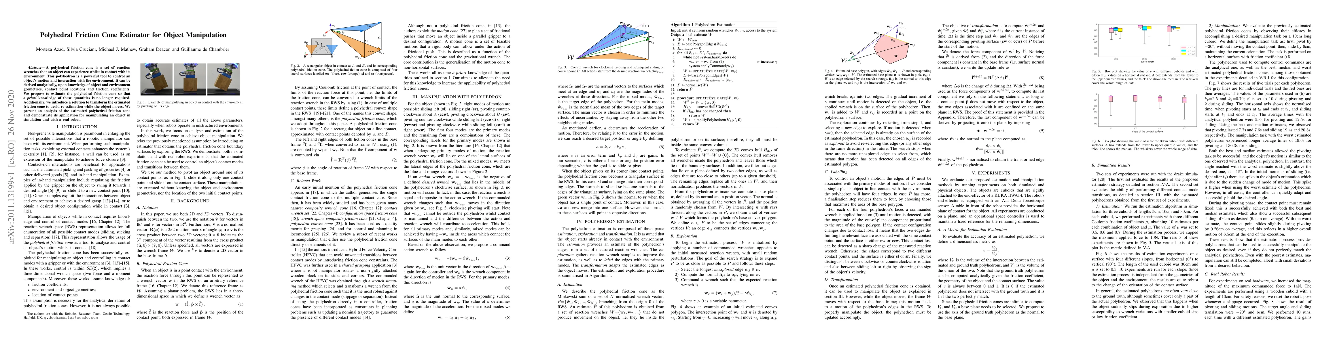 A polyhedral friction cone is a set of reaction wrenches that an object can experience whilst in contact with its environment. This polyhedron is a powerful tool to control an object's motion and interaction with the environment. It can be derived analytically, upon knowledge of object and environment geometries, contact point locations and friction coefficients. We propose to estimate the polyhedral friction cone so that a priori knowledge of these quantities is no longer required. Additionally, we introduce a solution to transform the estimated friction cone to avoid re-estimation while the object moves. We present an analysis of the estimated polyhedral friction cone and demonstrate its application for manipulating an object in simulation and with a real robot.