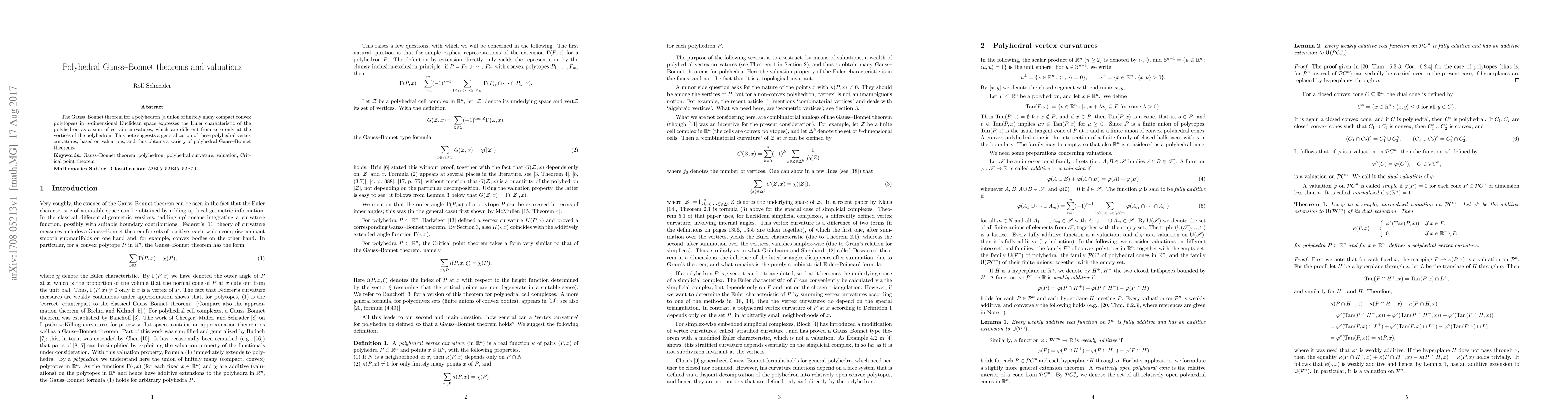 This paper generalizes the Gauss-Bonnet theorem for polyhedra by introducing valuations to define new vertex curvatures, leading to various extended polyhedral Gauss-Bonnet theorems.