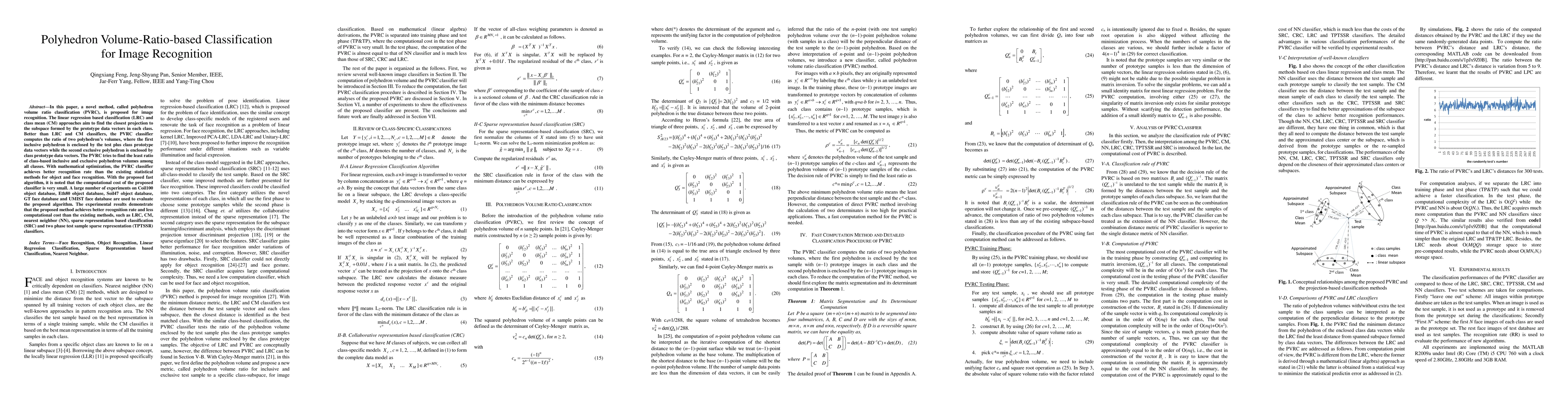 In this paper, a novel method, called polyhedron volume ratio classification (PVRC) is proposed for image recognition