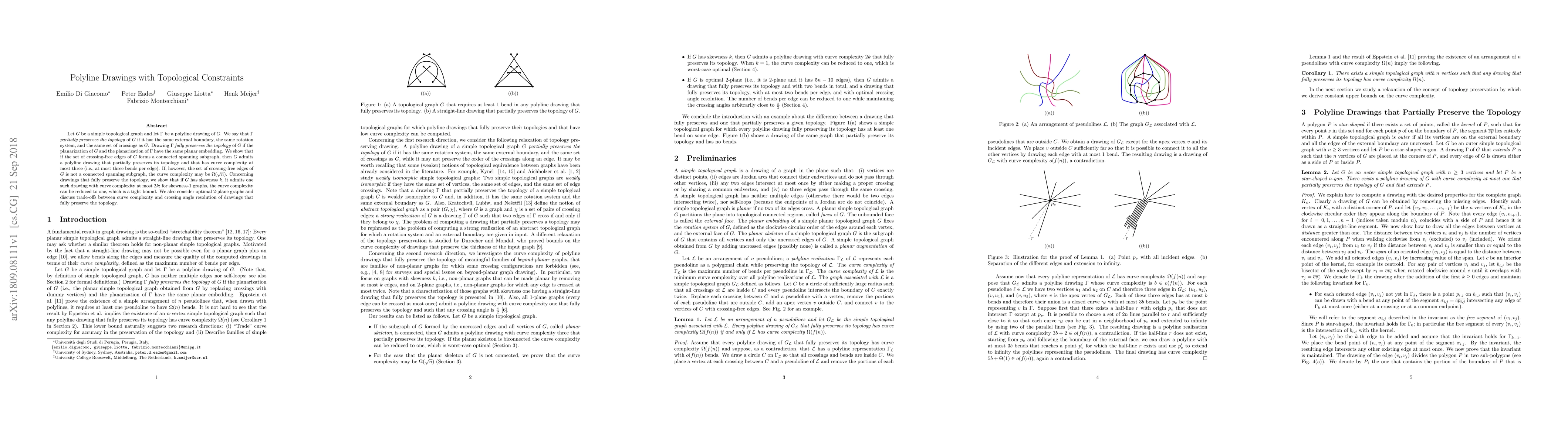 This paper explores polyline drawings of topological graphs, showing that if the crossing-free edges form a connected spanning subgraph, a topologically-preserving polyline drawing with at most three bends per edge is possible. However, if not connected, complexity can be $Omega(sqrt{n})$. For full topological preservation, curve complexity is bounded by $2k$ for skewness-$k$ graphs, and reduced to one for skewness-1 graphs. The paper also discusses trade-offs in optimal 2-plane graph drawings.