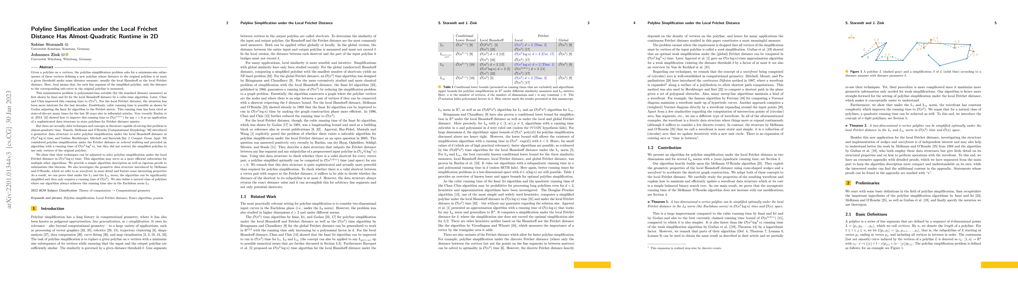 This paper presents an efficient algorithm for polyline simplification under the local Fréchet distance, achieving an almost-quadratic runtime of $O(n^2 \log n)$ in 2D, improving upon previous methods. The authors also explore the geometric data structure known as wavefront and demonstrate that under certain norms, the runtime can be further reduced to $O(n^2)$.