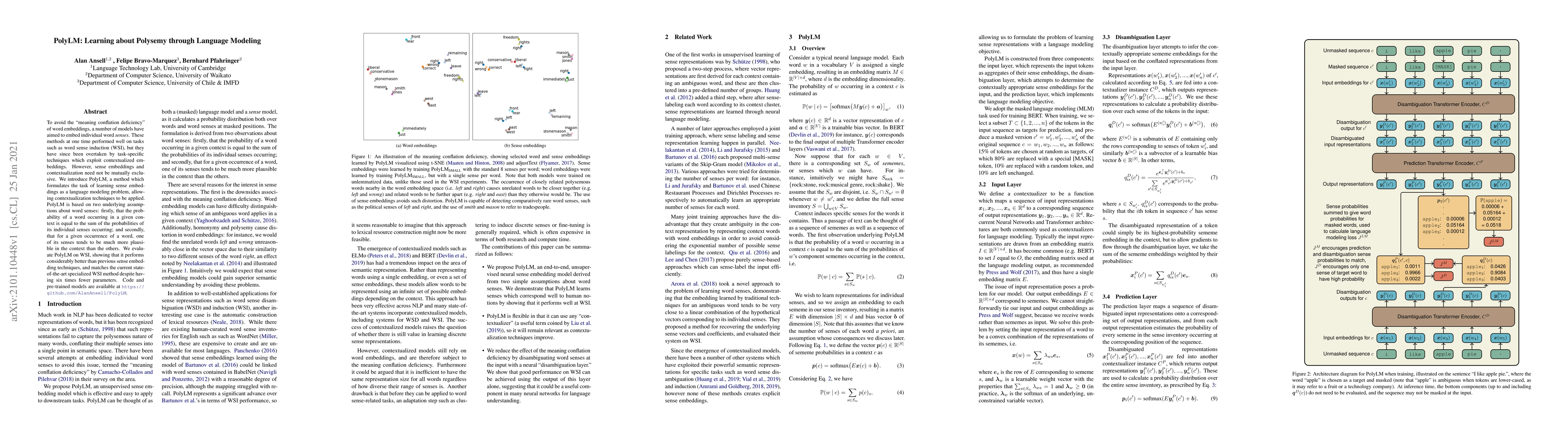 PolyLM addresses the "meaning conflation deficiency" in word embeddings by embedding individual word senses through a language modeling approach, achieving better performance on word sense induction than previous methods while using fewer parameters. The model leverages contextualization techniques and is available for further research.