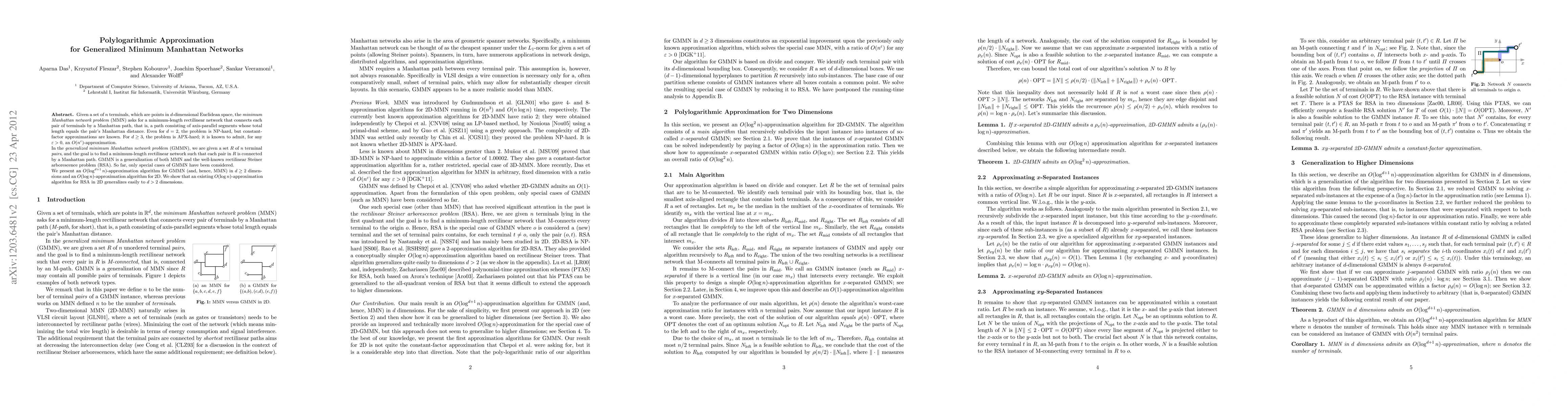 This paper presents an $O(\log^{d+1} n)$-approximation algorithm for the generalized minimum Manhattan network problem (GMMN) in $d \ge 2$ dimensions and an $O(\log n)$-approximation for 2D. It also generalizes an existing $O(\log n)$-approximation algorithm for the rectilinear Steiner arborescence problem to higher dimensions.