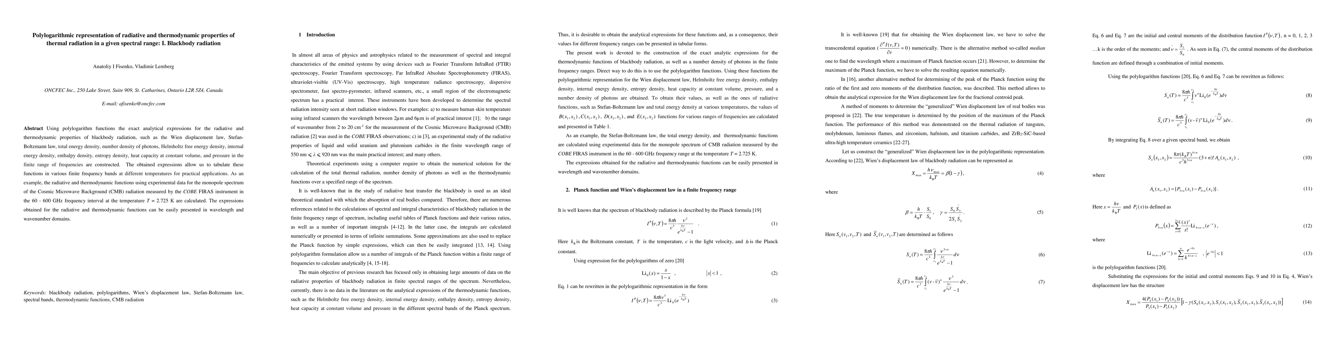 Researchers developed exact analytical expressions for blackbody radiation properties using polylogarithm functions, enabling tabulation of these functions in various frequency bands at different temperatures.