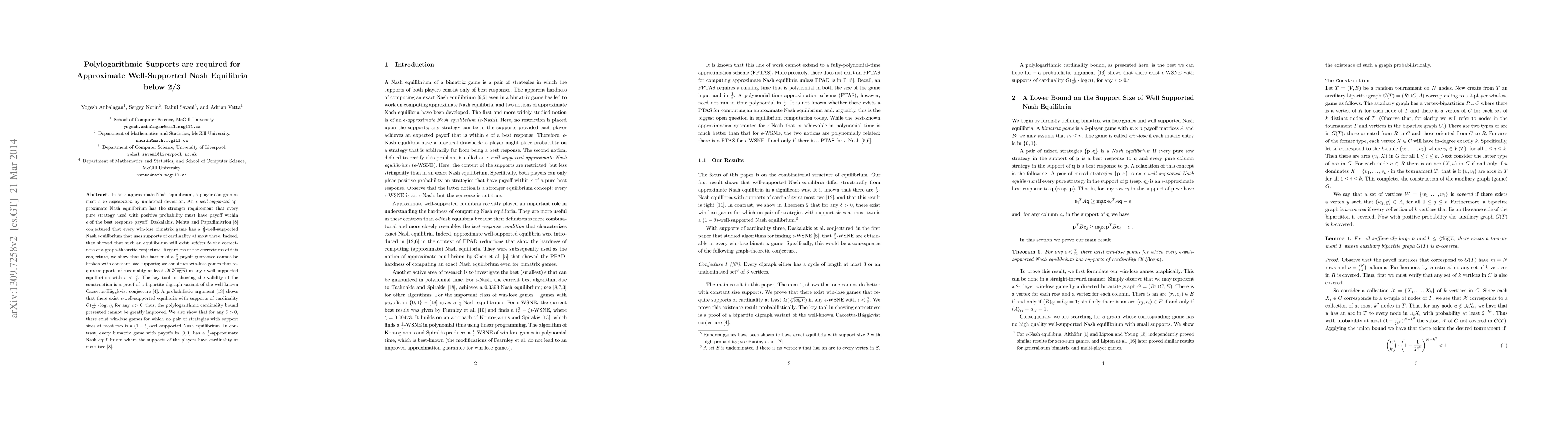 This paper demonstrates that achieving a 2/3-well-supported Nash equilibrium in win-lose bimatrix games requires polylogarithmic support sizes, refuting the conjecture that such equilibria can be found with constant support sizes. It also shows that for any epsilon < 2/3, the support size must be at least Omega((log n)^(1/3)) in any epsilon-well-supported equilibrium.