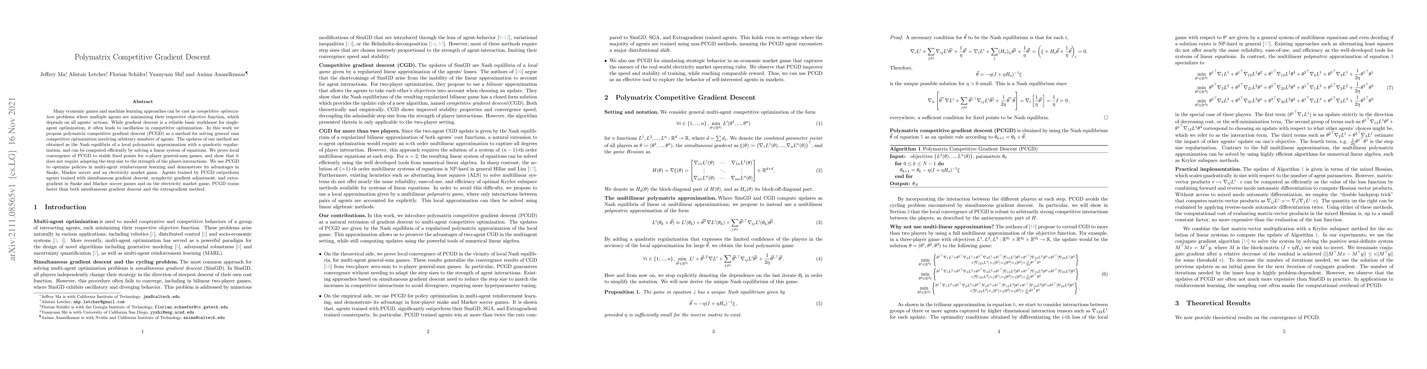 Polymatrix Competitive Gradient Descent (PCGD) solves general sum competitive optimization problems involving arbitrary numbers of agents, achieving stable fixed points and outperforming other methods in multi-agent reinforcement learning games.