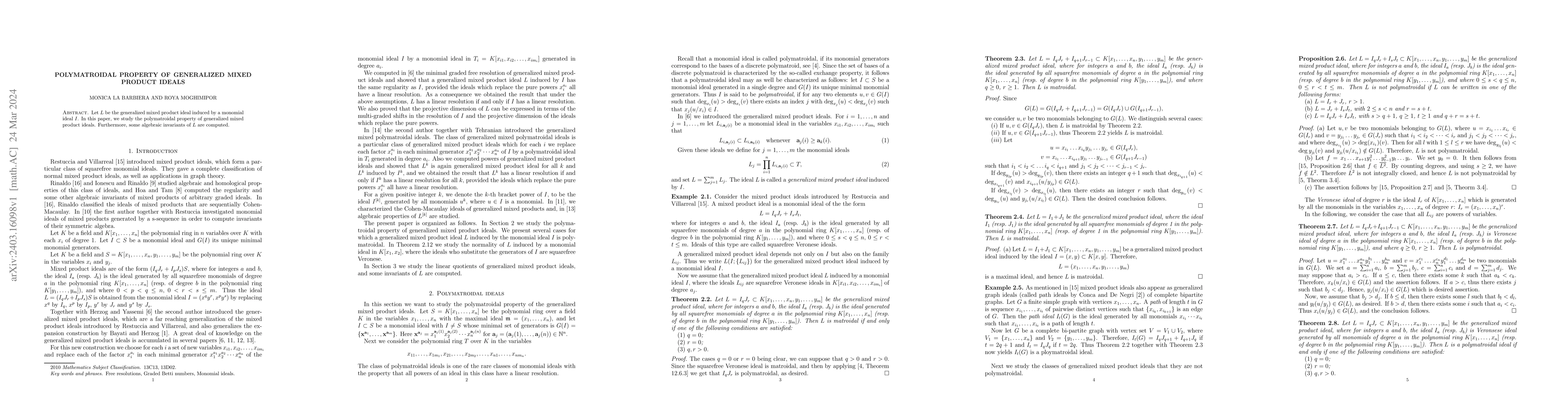 Let L be the generalized mixed product ideal induced by a monomial ideal I. In this paper, we study the polymatroidal property of generalized mixed product ideals. Furthermore, some algebraic invariants of L are computed.