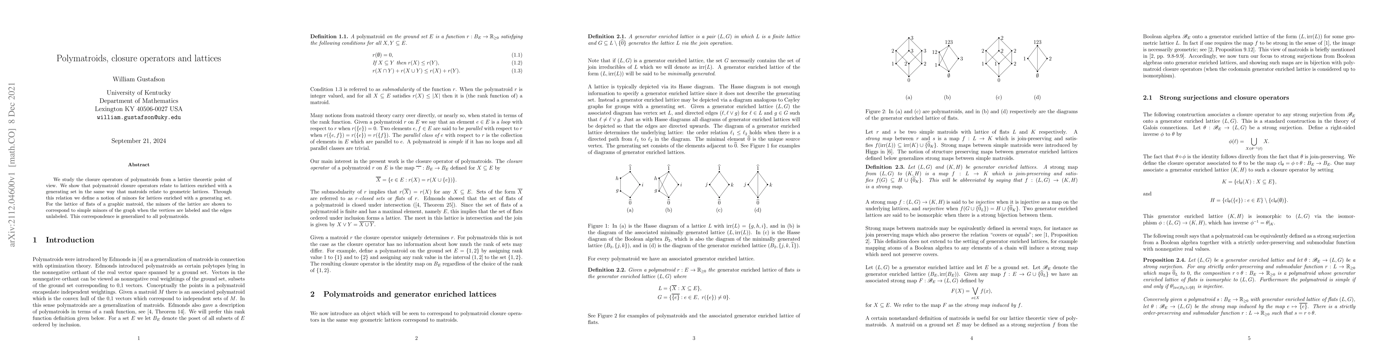 This paper explores the lattice-theoretic perspective on polymatroid closure operators, establishing a connection between them and lattices with generating sets akin to the relation between matroids and geometric lattices. It introduces a notion of minors for these lattices, demonstrating a correspondence between minors of graphic matroid lattices and simple graph minors under vertex labeling.