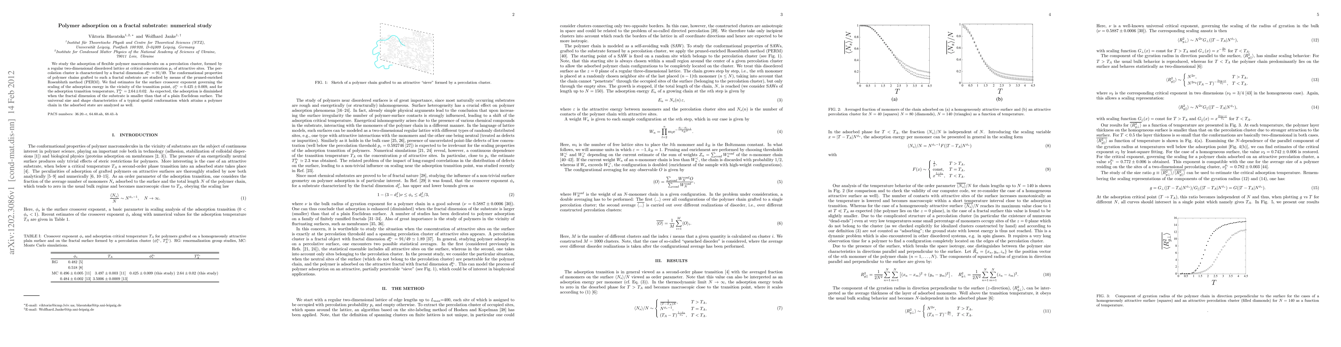 Researchers studied how flexible polymer chains adsorb to a fractal substrate at critical concentration, finding key properties such as surface crossover exponent and adsorption transition temperature. They also found that fractal dimension affects polymer chain conformation.