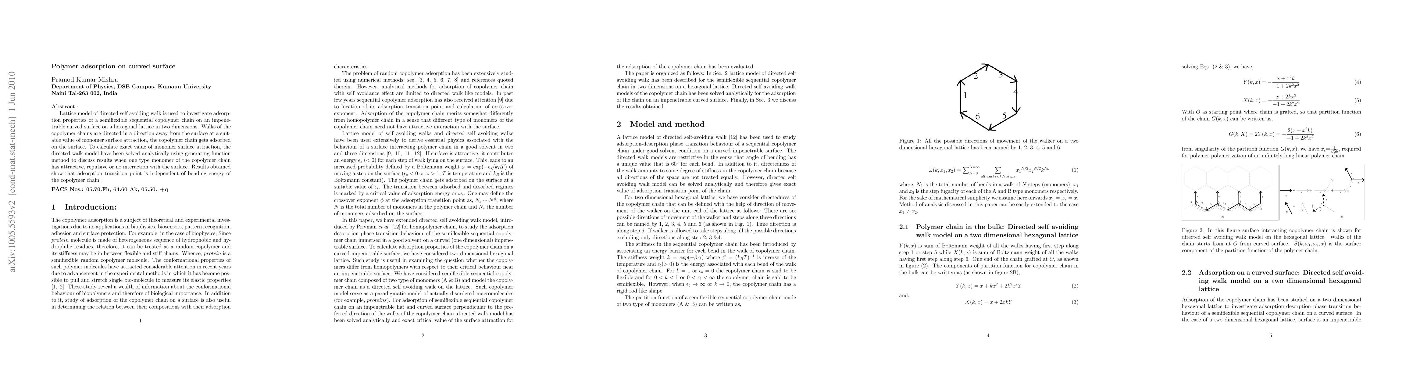 Researchers used a lattice model to study how a semiflexible copolymer chain adsorbs on a curved surface, finding that the adsorption transition point is independent of the chain's bending energy.