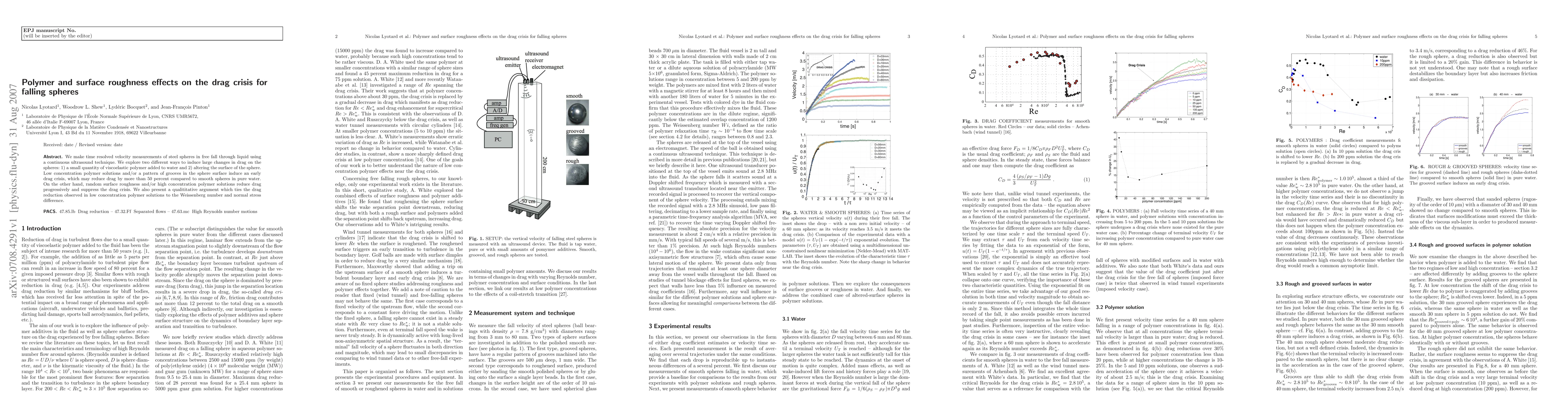 This study investigates the drag crisis for falling steel spheres in liquid, focusing on the effects of viscoelastic polymer solutions and surface roughness. It finds that low polymer concentrations and grooved surfaces can induce early drag crisis, reducing drag by over 50%, while high polymer concentrations and random surface roughness progressively reduce drag and suppress the drag crisis.