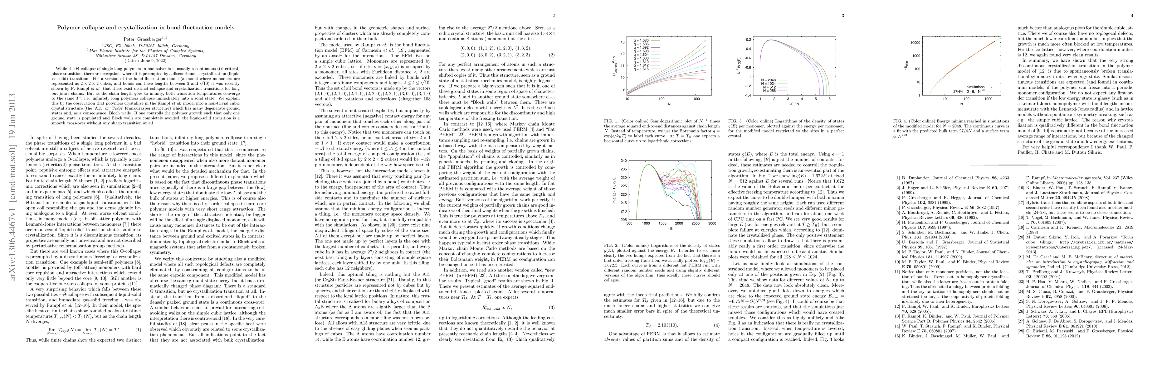 While the $\Theta$-collapse of single long polymers in bad solvents is usually a continuous (tri-critical) phase transition, there are exceptions where it is preempted by a discontinuous crystallization (liquid $\leftrightarrow$ solid) transition. For a version of the bond-fluctuation model (a model where monomers are represented as $2\times 2\times 2$ cubes, and bonds can have lengths between 2 and $\sqrt{10}$) it was recently shown by F. Rampf {\it et al.} that there exist distinct collapse and crystallization transitions for long but {\it finite} chains. But as the chain length goes to infinity, both transition temperatures converge to the same $T^*$, i.e. infinitely long polymers collapse immediately into a solid state. We explain this by the observation that polymers crystallize in the Rampf {\it et al.} model into a non-trivial cubic crystal structure (the `A15' or `Cr$_3$Si' Frank-Kasper structure) which has many degenerate ground states and, as a consequence, Bloch walls. If one controlls the polymer growth such that only one ground state is populated and Bloch walls are completely avoided, the liquid-solid transition is a smooth cross-over without any sharp transition at all.