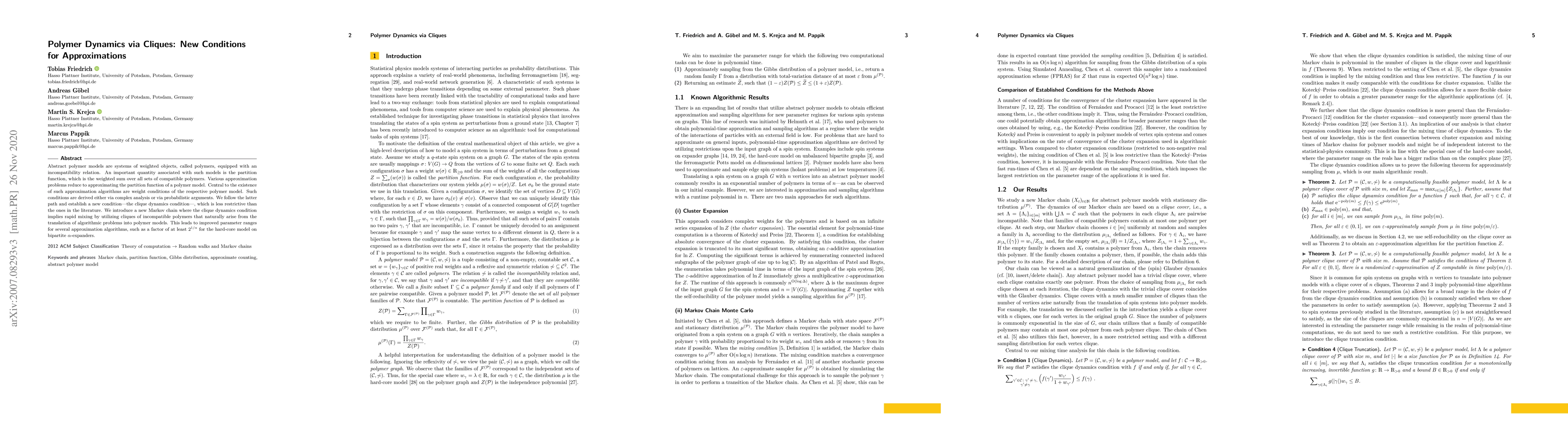 Abstract polymer models are systems of weighted objects, called polymers, equipped with an incompatibility relation. An important quantity associated with such models is the partition function, which is the weighted sum over all sets of compatible polymers. Various approximation problems reduce to approximating the partition function of a polymer model. Central to the existence of such approximation algorithms are weight conditions of the respective polymer model. Such conditions are derived either via complex analysis or via probabilistic arguments. We follow the latter path and establish a new condition---the clique dynamics condition---, which is less restrictive than the ones in the literature. We introduce a new Markov chain where the clique dynamics condition implies rapid mixing by utilizing cliques of incompatible polymers that naturally arise from the translation of algorithmic problems into polymer models. This leads to improved parameter ranges for several approximation algorithms, such as a factor of at least $2^{1/\alpha}$ for the hard-core model on bipartite $\alpha$-expanders.