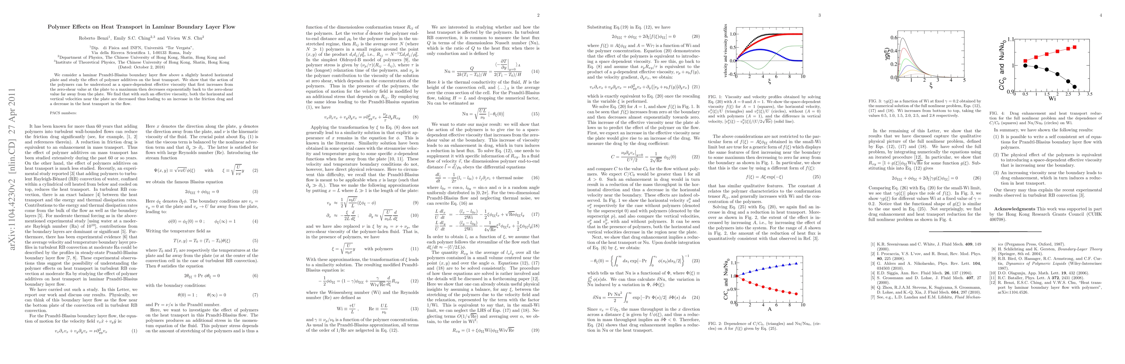 This paper investigates how polymer additives influence heat transport in laminar boundary layer flow over a heated horizontal plate, finding that the polymers create a space-dependent effective viscosity that reduces friction drag and heat transport by decreasing both horizontal and vertical velocities near the plate.