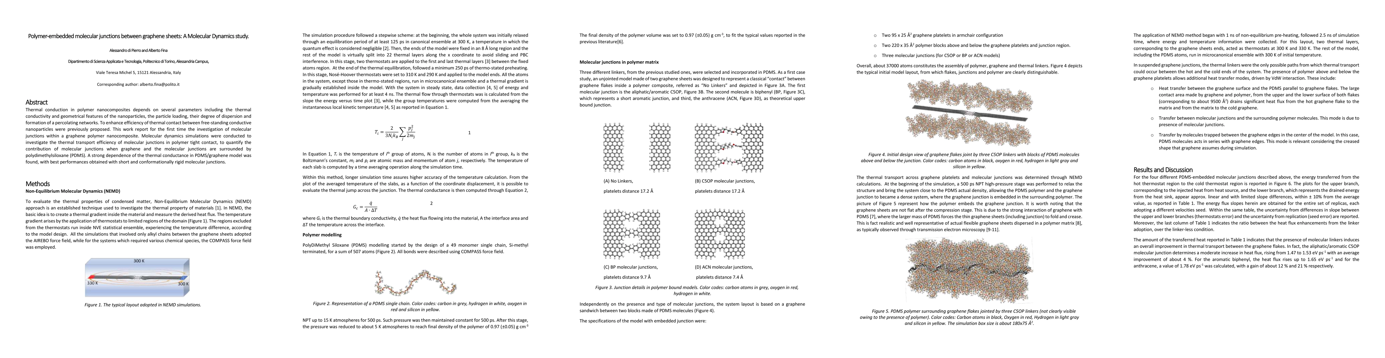 This study investigates the thermal transport efficiency in polymer nanocomposites using molecular dynamics simulations, focusing on polymer-embedded molecular junctions between graphene sheets. The research finds that short and conformationally rigid molecular junctions significantly enhance thermal conductance in PDMS/graphene models.