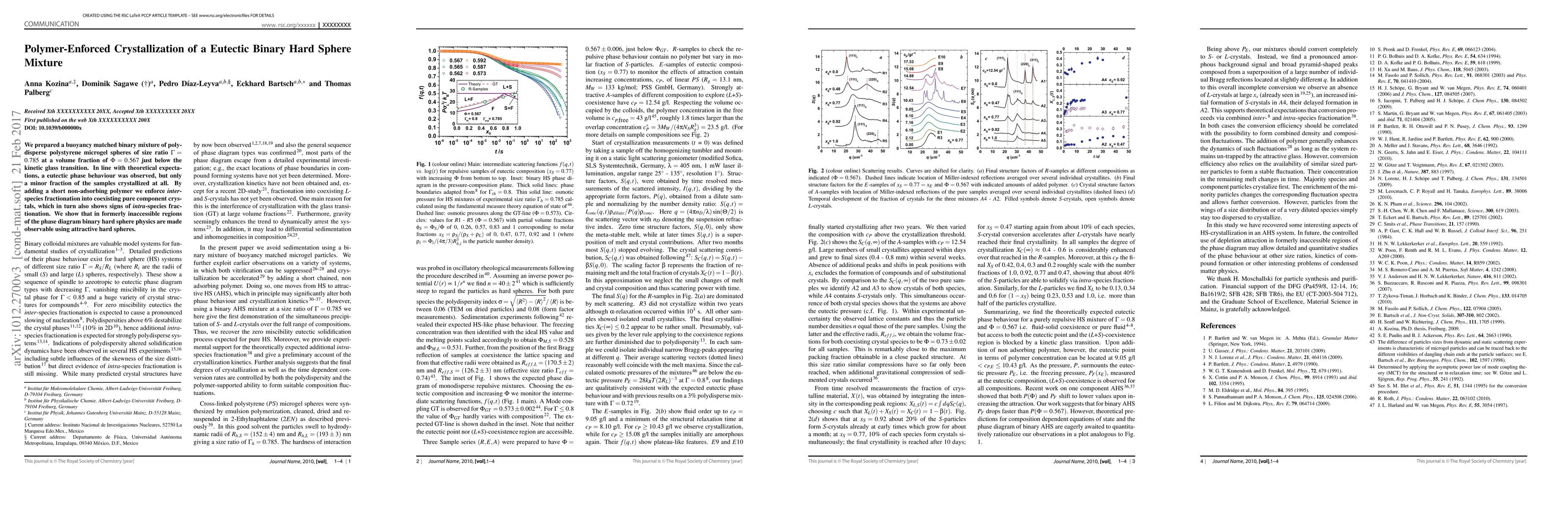 We prepared a buoyancy matched binary mixture of polydisperse polystyrene microgel spheres of size ratio 0.785 and at a volume fraction of 0.567 just below the kinetic glass transition. In line with theoretical expectations, a eutectic phase behavior was observed, but only a minor fraction of the samples crystallized at all. By adding a short non-adsorbing polymer we enforce inter-species fractionation into coexisting pure component crystals, which in turn also shows signs of intra-species fractionation. We show that in formerly inaccessible regions of the phase diagram binary hard sphere physics is made observable using attractive hard spheres. Ancillary files: Correction to Soft Matter 2012, 8, 627