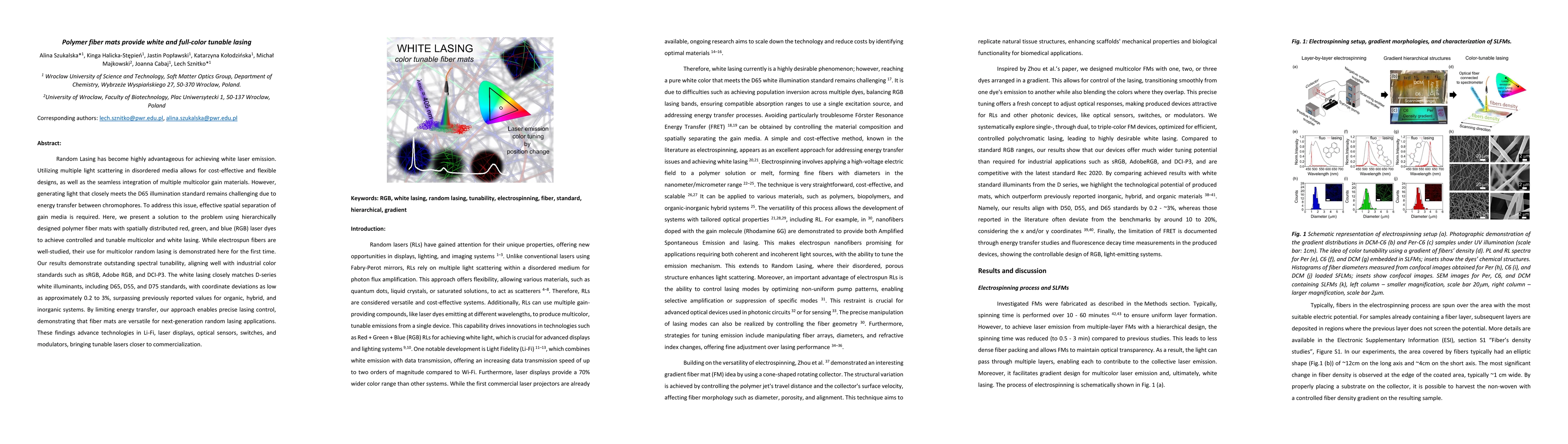 Random Lasing has become highly advantageous for achieving white laser emission. Utilizing multiple light scattering in disordered media allows for cost-effective and flexible designs, as well as the seamless integration of multiple multicolor gain materials. However, generating light that closely meets the D65 illumination standard remains challenging due to energy transfer between chromophores. To address this issue, effective spatial separation of gain media is required. Here, we present a solution to the problem using hierarchically designed polymer fiber mats with spatially distributed red, green, and blue (RGB) laser dyes to achieve controlled and tunable multicolor and white lasing. While electrospun fibers are well-studied, their use for multicolor random lasing is demonstrated here for the first time. Our results demonstrate outstanding spectral tunability, aligning well with industrial color standards such as sRGB, Adobe RGB, and DCI-P3. The white lasing closely matches D-series white illuminants, including D65, D55, and D75 standards, with coordinate deviations as low as approximately 0.2 to 3%, surpassing previously reported values for organic, hybrid, and inorganic systems. By limiting energy transfer, our approach enables precise lasing control, demonstrating that fiber mats are versatile for next-generation random lasing applications. These findings advance technologies in Li-Fi, laser displays, optical sensors, switches, and modulators, bringing tunable lasers closer to commercialization.