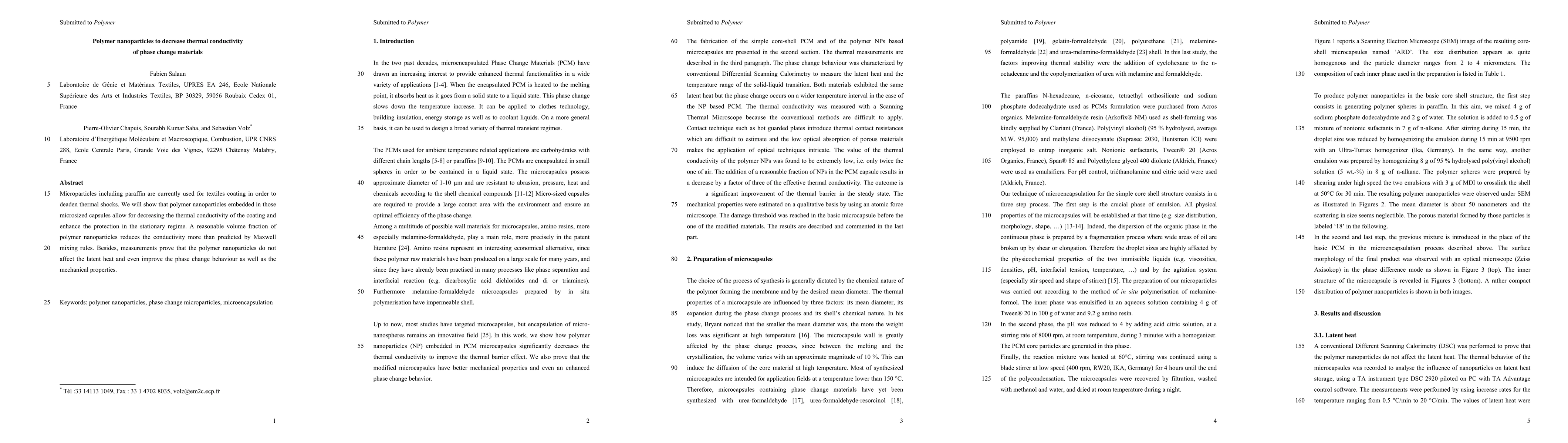 Microparticles including paraffin are currently used for textiles coating in order to deaden thermal shocks. We will show that polymer nanoparticles embedded in those microsized capsules allow for decreasing the thermal conductivity of the coating and enhance the protection in the stationary regime. A reasonable volume fraction of polymer nanoparticles reduces the conductivity more than predicted by Maxwell mixing rules. Besides, measurements prove that the polymer nanoparticles do not affect the latent heat and even improve the phase change behaviour as well as the mechanical properties.