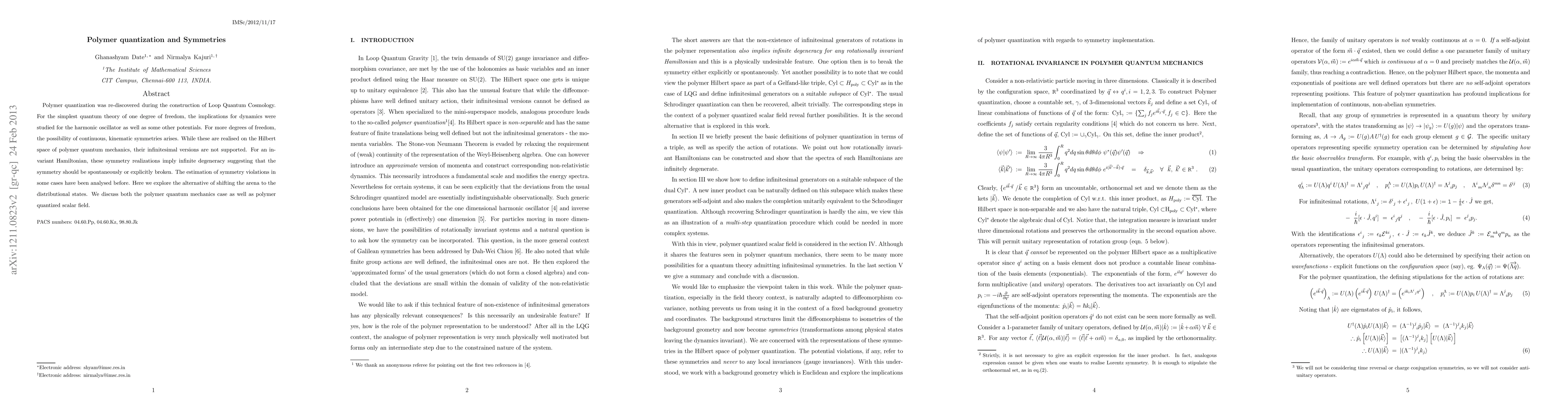 Polymer quantization was discovered during the construction of Loop Quantum Cosmology. For the simplest quantum theory of one degree of freedom, the implications for dynamics were studied for the harmonic oscillator as well as some other potentials. For more degrees of freedom, the possibility of continuous, kinematic symmetries arises. While these are realised on the Hilbert space of polymer quantum mechanics, their infinitesimal versions are not supported. For an invariant Hamiltonian, these symmetry realizations imply infinite degeneracy suggesting that the symmetry should be spontaneously or explicitly broken. The estimation of symmetry violations in some cases have been analysed before. Here we explore the alternative of shifting the arena to the distributional states. We discuss both the polymer quantum mechanics case as well as polymer quantized scalar field.