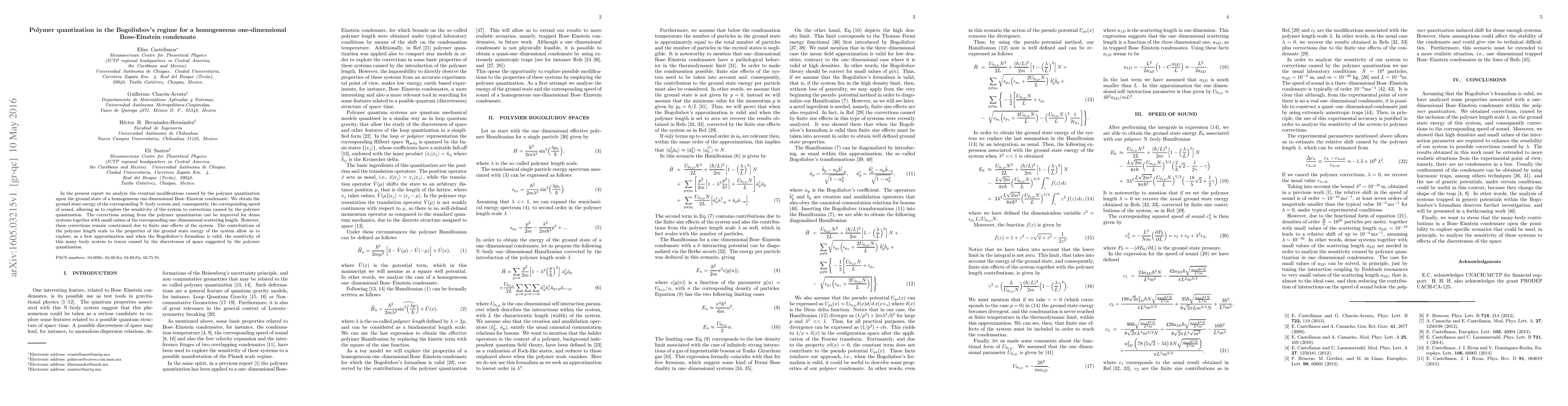 In the present report we analyze the eventual modifications caused by the polymer quantization upon the ground state of a homogeneous one-dimensional Bose-Einstein condensate. We obtain the ground state energy of the corresponding N-body system and, consequently, the corresponding speed of sound, allowing us to explore the sensitivity of the system to corrections caused by the polymer quantization. The corrections arising from the polymer quantization can be improved for dense systems together with small values of the corresponding one-dimensional scattering length. However, these corrections remain constrained due to finite size effects of the system. The contributions of the polymer length scale to the properties of the ground state energy of the system allow us to explore, as a first approximation and when the Bogoliubov's formalism is valid, the sensitivity of this many-body system to traces caused by the discreteness of space suggested by the polymer quantization.