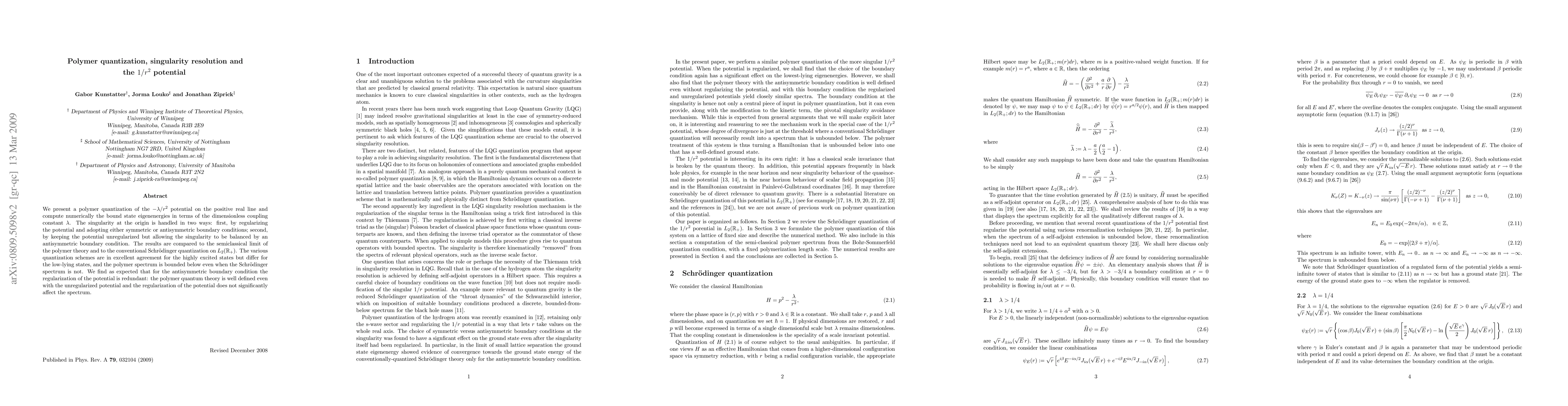 This paper quantizes the -λ/r² potential using polymer quantization, comparing results from regularized and unregularized potentials with antisymmetric boundary conditions. The polymer quantization yields a bounded spectrum even when the conventional Schrödinger quantization does not, showing agreement for excited states but differences for low-lying states.