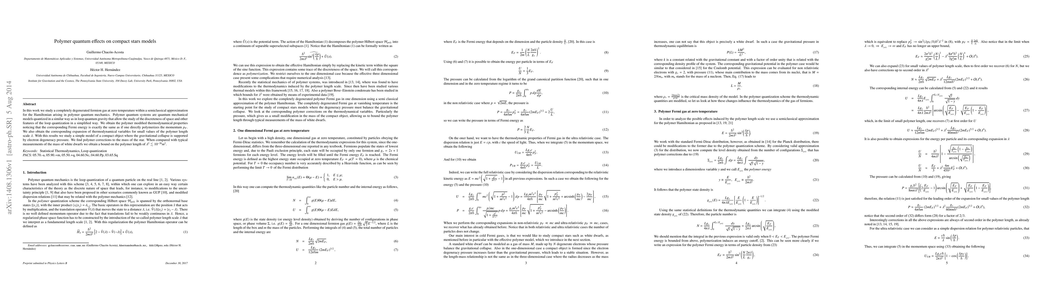 In this work we study a completely degenerated fermion gas at zero temperature within a semiclassical approximation for the Hamiltonian arising in polymer quantum mechanics. Polymer quantum systems are quantum mechanical models quantized in a similar way as in loop quantum gravity that allow the study of the discreteness of space and other features of the loop quantization in a simplified way. We obtain the polymer modified thermodynamical properties noticing that the corresponding Fermi energy is exactly the same as if one directly polymerizes the momentum $p_F$. We also obtain the corresponding expansion of thermodynamical variables for small values of the polymer length scale $\lambda$. With this results we study a simple model of a compact object where the gravitational collapse is supported by electron degeneracy pressure. We find polymer corrections to the mass of the star. When compared with typical measurements of the mass of white dwarfs we obtain a bound on the polymer length of $\lambda^2\lesssim 10^{-26}m^2$.