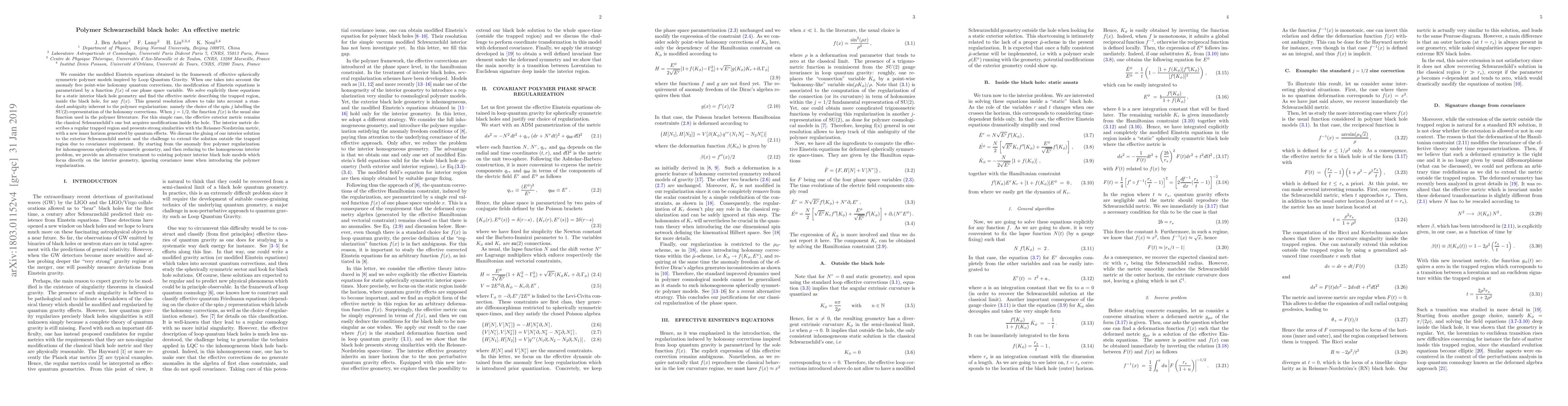 We consider the modified Einstein equations obtained in the framework of effective spherically symmetric polymer models inspired by Loop Quantum Gravity. When one takes into account the anomaly free point-wise holonomy quantum corrections, the modification of Einstein equations is parametrized by a function $f(x)$ of one phase space variable. We solve explicitly these equations for a static interior black hole geometry and find the effective metric describing the trapped region, inside the black hole, for any $f(x)$. This general resolution allows to take into account a standard ambiguity inherent to the polymer regularization: namely the choice of the spin $j$ labelling the SU$(2)$-representation of the holonomy corrections. When $j=1/2$, the function $f(x)$ is the usual sine function used in the polymer litterature. For this simple case, the effective exterior metric remains the classical Schwarzschild's one but acquires modifications inside the hole. The interior metric describes a regular trapped region and presents strong similarities with the Reissner-Nordstr\"om metric, with a new inner horizon generated by quantum effects. We discuss the gluing of our interior solution to the exterior Schwarzschild metric and the challenge to extend the solution outside the trapped region due to covariance requirement. By starting from the anomaly free polymer regularization for inhomogeneous spherically symmetric geometry, and then reducing to the homogeneous interior problem, we provide an alternative treatment to existing polymer interior black hole models which focus directly on the interior geometry, ignoring covariance issue when introducing the polymer regularization.