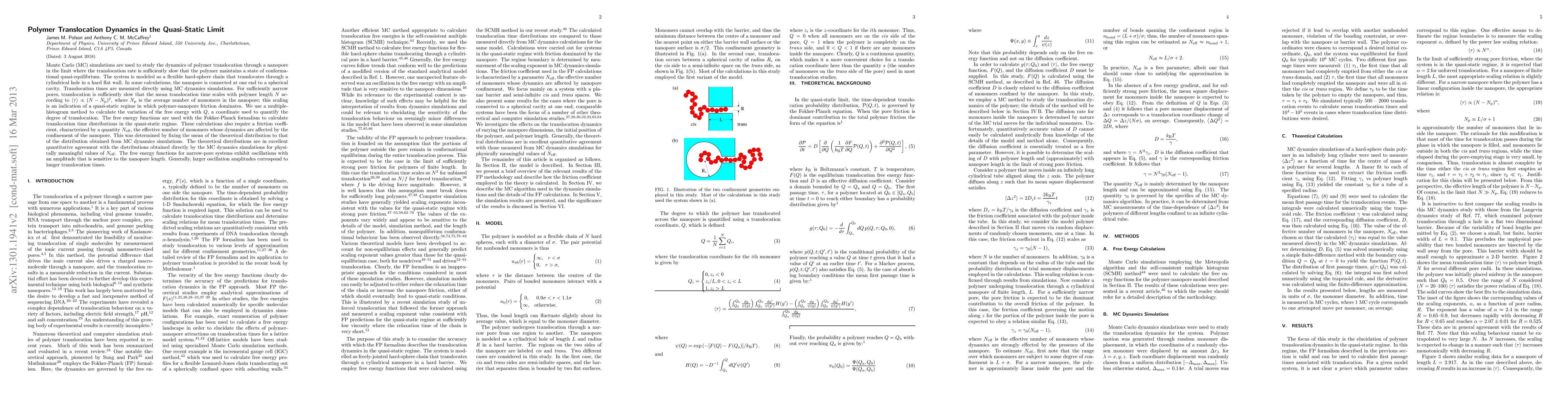 Monte Carlo simulations reveal the quasi-static dynamics of polymer translocation through nanopores, showing mean translocation times scaling as (N-N_p)^2. Theoretical distributions match simulation results, indicating polymer-nanopore friction dominates in the quasi-static regime.