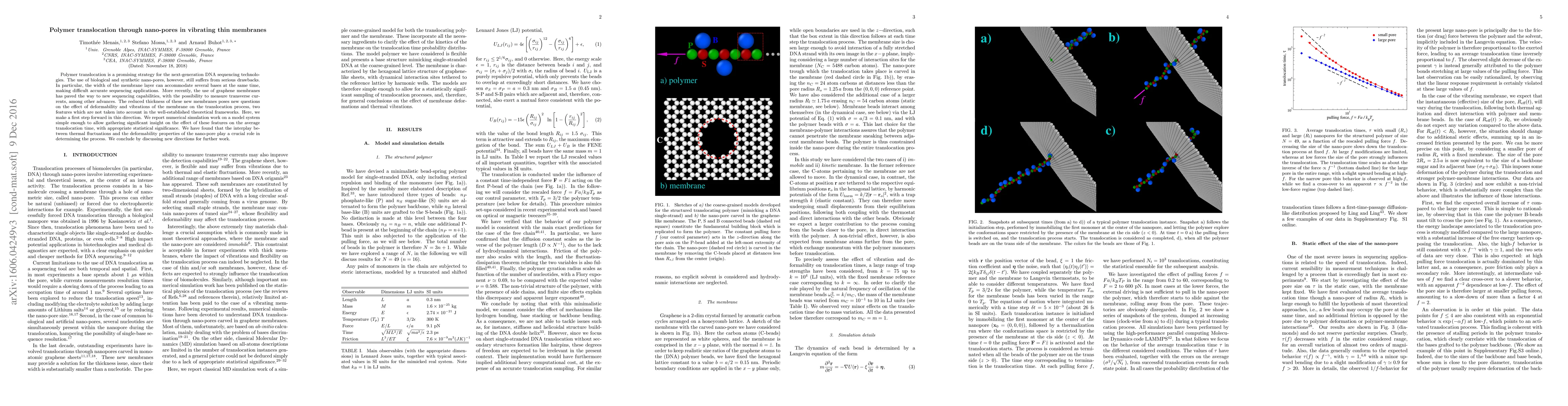 This paper investigates the effect of membrane vibrations and deformability on polymer translocation through nano-pores in graphene membranes using numerical simulations. The findings suggest that thermal fluctuations and membrane properties significantly influence the average translocation time, highlighting new avenues for improving DNA sequencing technologies.