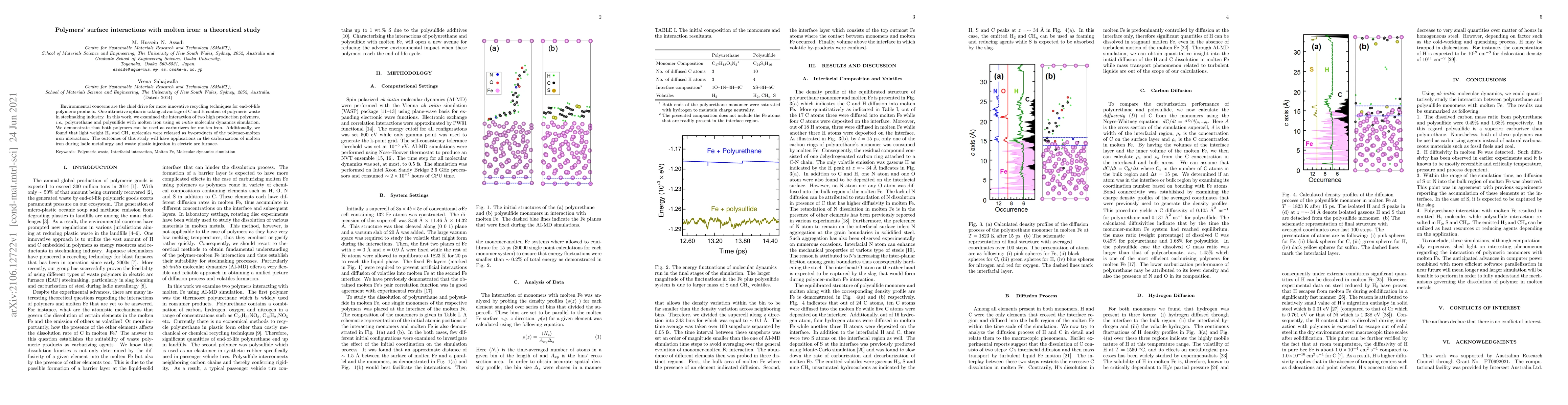 Researchers used simulation to study how polymers like polyurethane and polysulfide interact with molten iron, finding they can act as carburizers and release hydrogen and carbon-rich gases.