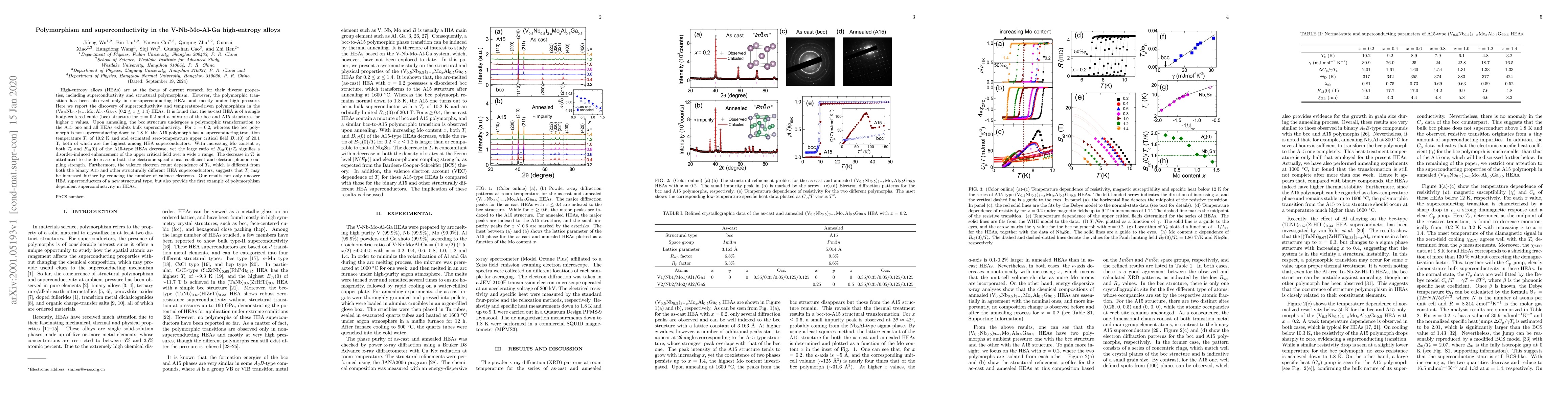 High-entropy alloys (HEAs) are at the focus of current research for their diverse properties, including superconductivity and structural polymorphism. However, the polymorphic transition has been observed only in nonsuperconducting HEAs and mostly under high pressure. Here we report the discovery of superconductivity and temperature-driven polymorphism in the (V$_{0.5}$Nb$_{0.5}$)$_{3-x}$Mo$_{x}$Al$_{0.5}$Ga$_{0.5}$ (0.2 $\leq$ $x$ $\leq$ 1.4) HEAs. It is found that the as-cast HEA is of a single body-centered cubic (bcc) structure for $x$ = 0.2 and a mixture of the bcc and A15 structures for higher $x$ values. Upon annealing, the bcc structure undergoes a polymorphic transformation to the A15 one and all HEAs exhibits bulk superconductivity. For $x$ = 0.2, whereas the bcc polymorph is not superconducting down to 1.8 K, the A15 polymorph has a superconducting transition temperature $T_{\rm c}$ of 10.2 K and an estimated zero-temperature upper critical field $B_{\rm c2}$(0) of 20.1 T, both of which are the highest among HEA superconductors. With increasing Mo content $x$, both $T_{\rm c}$ and $B_{\rm c2}$(0) of the A15-type HEAs decrease, yet the large ratio of $B_{\rm c2}$(0)/$T_{\rm c}$ signifies a disorder-induced enhancement of the upper critical field over a wide $x$ range. The decrease in $T_{\rm c}$ is attributed to the decrease in both the electronic specific-heat coefficient and electron-phonon coupling strength. Furthermore, the valence electron count dependence of $T_{\rm c}$, which is different from both the binary A15 and other structurally different HEA superconductors, suggests that $T_{\rm c}$ may be increased further by reducing the number of valence electrons. Our results not only uncover HEA superconductors of a new structural type, but also provide the first example of polymorphism dependent superconductivity in HEAs.