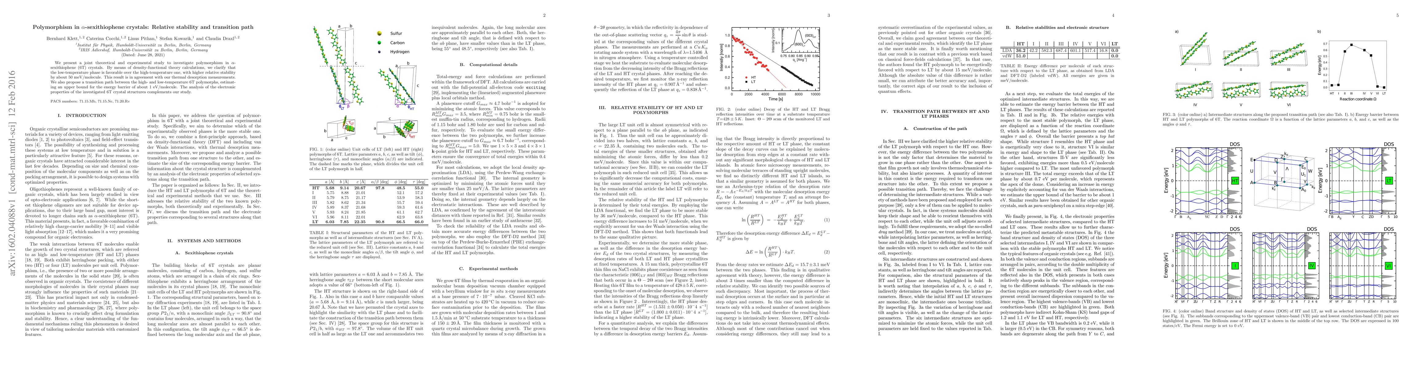 Researchers investigate polymorphism in alpha-sexithiophene crystals using density-functional theory calculations and thermal desorption measurements, finding the low-temperature phase is more stable and proposes a transition path with an estimated energy barrier of 1 eV/molecule.