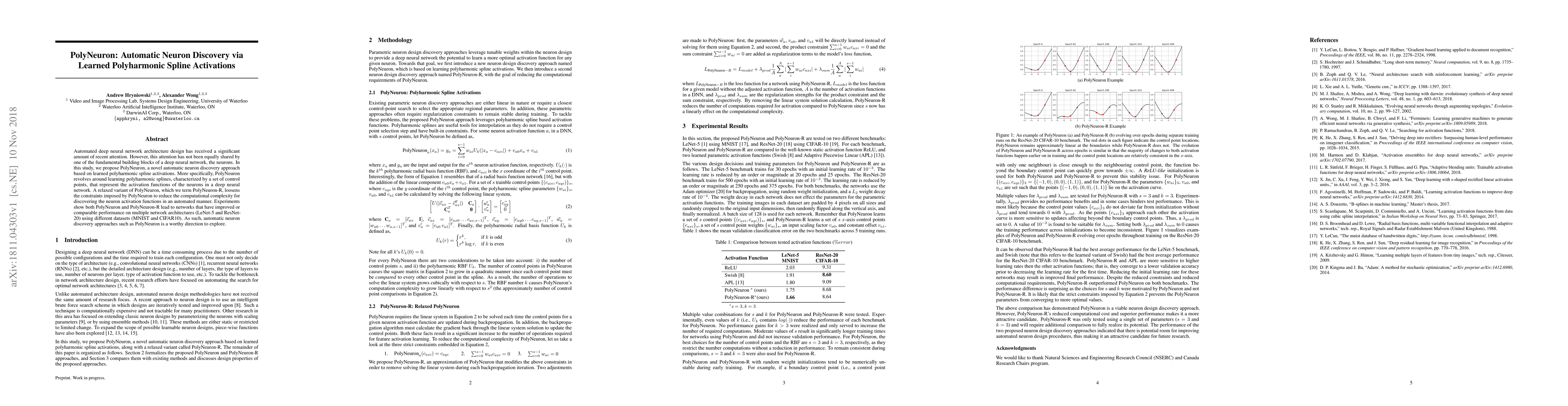 PolyNeuron introduces an automatic neuron discovery method using learned polyharmonic spline activations, demonstrating improved or comparable performance on various network architectures and datasets. A relaxed variant, PolyNeuron-R, simplifies the process while still achieving effective results.