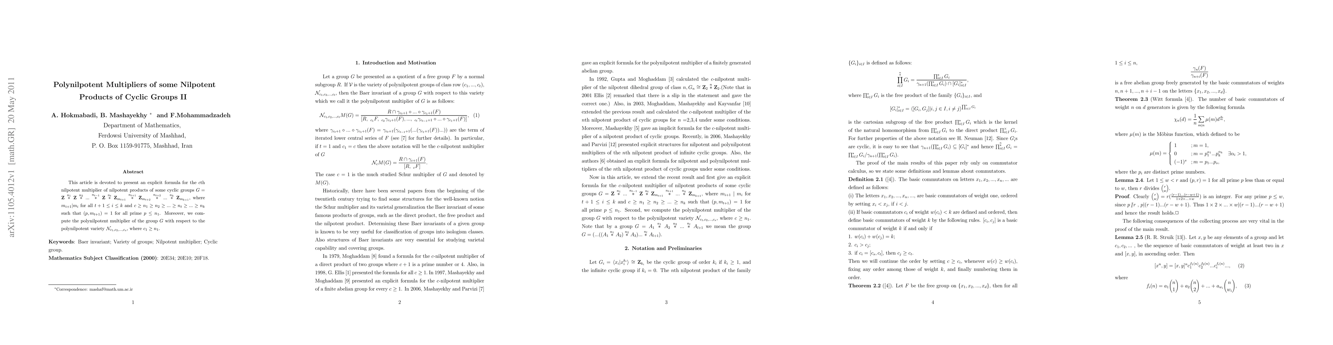 This paper provides an explicit formula for the $c$th nilpotent multiplier of a specific nilpotent product of cyclic groups and computes the polynilpotent multiplier of the group with respect to a given polynilpotent variety. The focus is on the structure and properties of these multipliers under defined constraints.