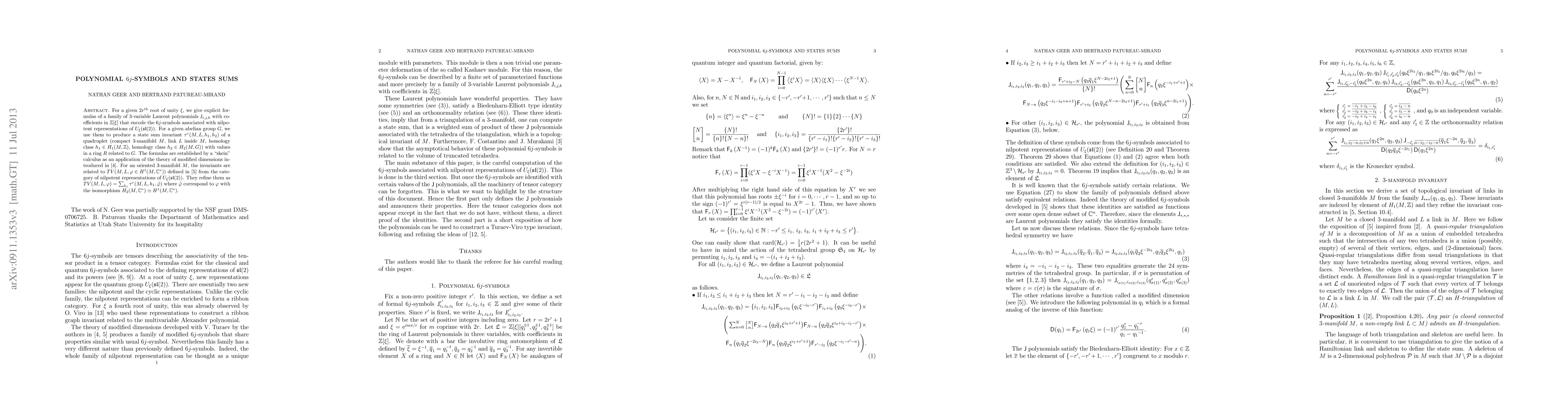 For q a root of unity of order 2r, we give explicit formulas of a family of 3-variable Laurent polynomials J_{i,j,k} with coefficients in Z[q] that encode the 6j-symbols associated with nilpotent representations of U_qsl_2. For a given abelian group G, we use them to produce a state sum invariant tau^r(M,L,h_1,h_2) of a quadruplet (compact 3-manifold M, link L inside M, homology class h_1\in H_1(M,Z), homology class h_2\in H_2(M,G)) with values in a ring R related to G. The formulas are established by a "skein" calculus as an application of the theory of modified dimensions introduced in [arXiv:0711.4229]. For an oriented 3-manifold M, the invariants are related to TV(M,L,f\in H^1(M,C^*)) defined in [arXiv:0910.1624] from the category of nilpotent representations of U_qsl_2. They refine them as TV(M,L,f)= Sum_h tau^r(M,L,h,f') where f' correspond to f with the isomorphism H_2(M,C^*) ~ H^1(M,C^*).
