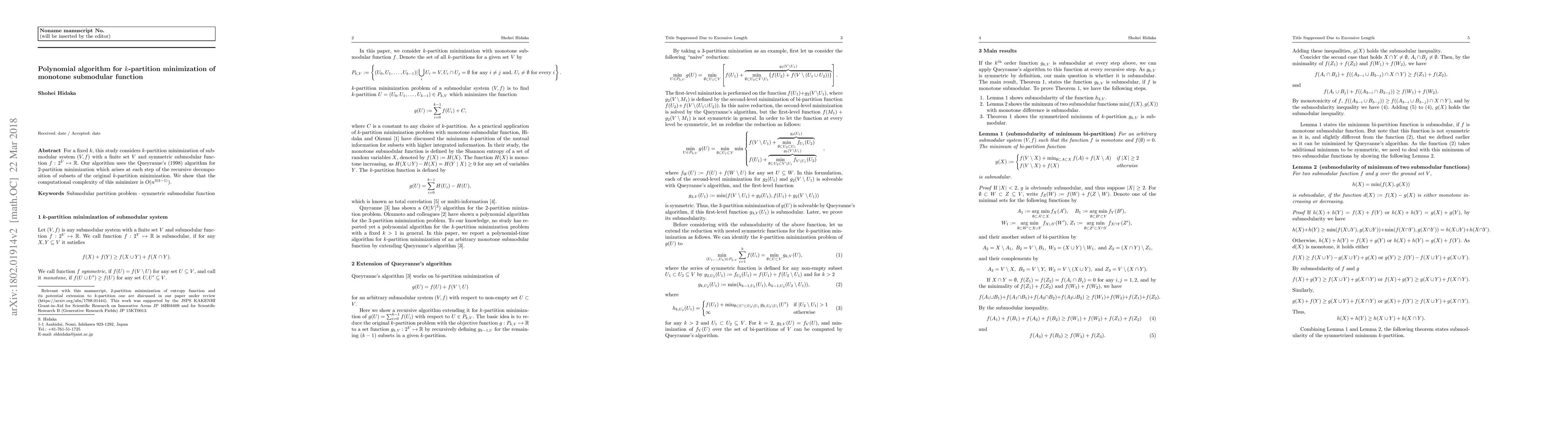 This paper presents a polynomial algorithm for minimizing $k$-partitions of a monotone submodular function, utilizing Queyranne's 2-partition minimization algorithm in a recursive decomposition approach, with a computational complexity of $O(n^{3(k-1)})$.