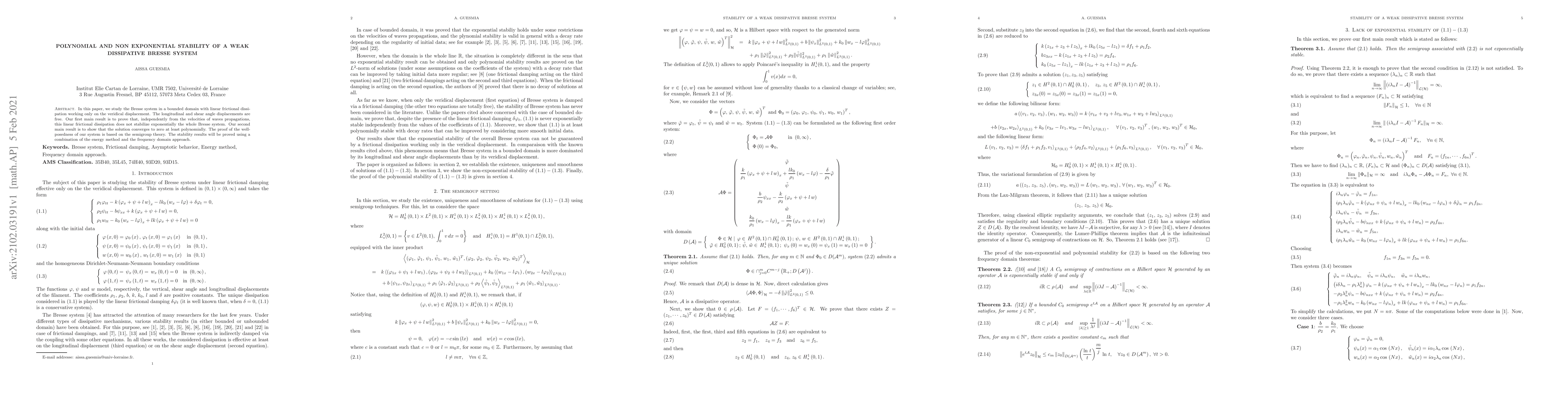 This paper investigates the Bresse system with linear frictional dissipation, proving that while the system does not exhibit exponential stability, it does achieve polynomial stability. The study employs semigroup theory, the energy method, and frequency domain analysis to demonstrate these stability properties.