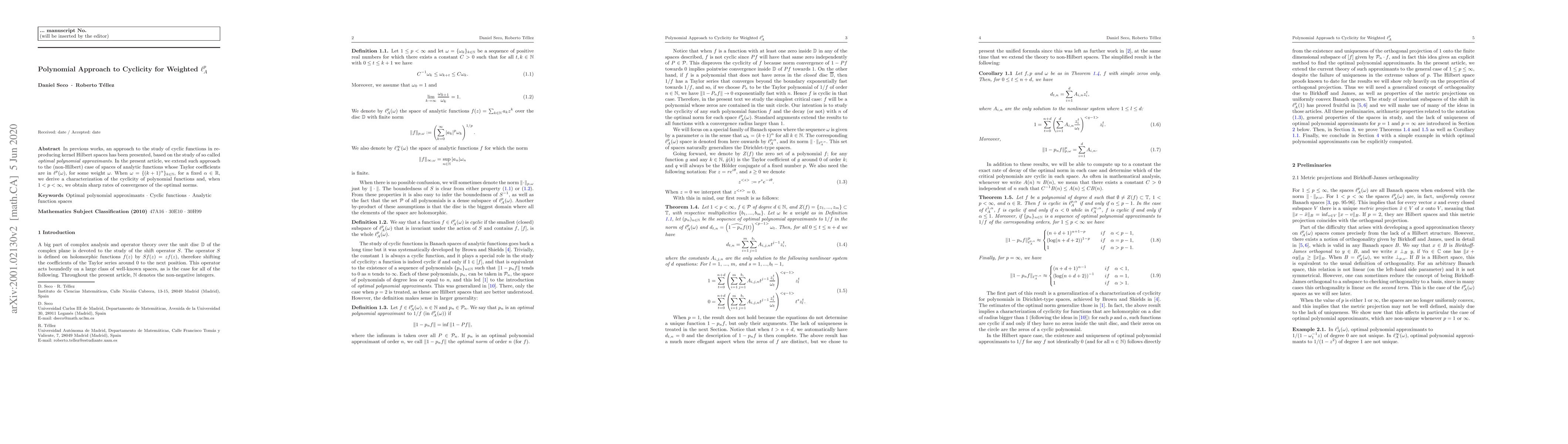 This paper extends an approach to studying cyclic functions in spaces of analytic functions with Taylor coefficients in π^p(ˠ), deriving a characterization of polynomial cyclicity and sharp rates of convergence for 1<p<¸¹.